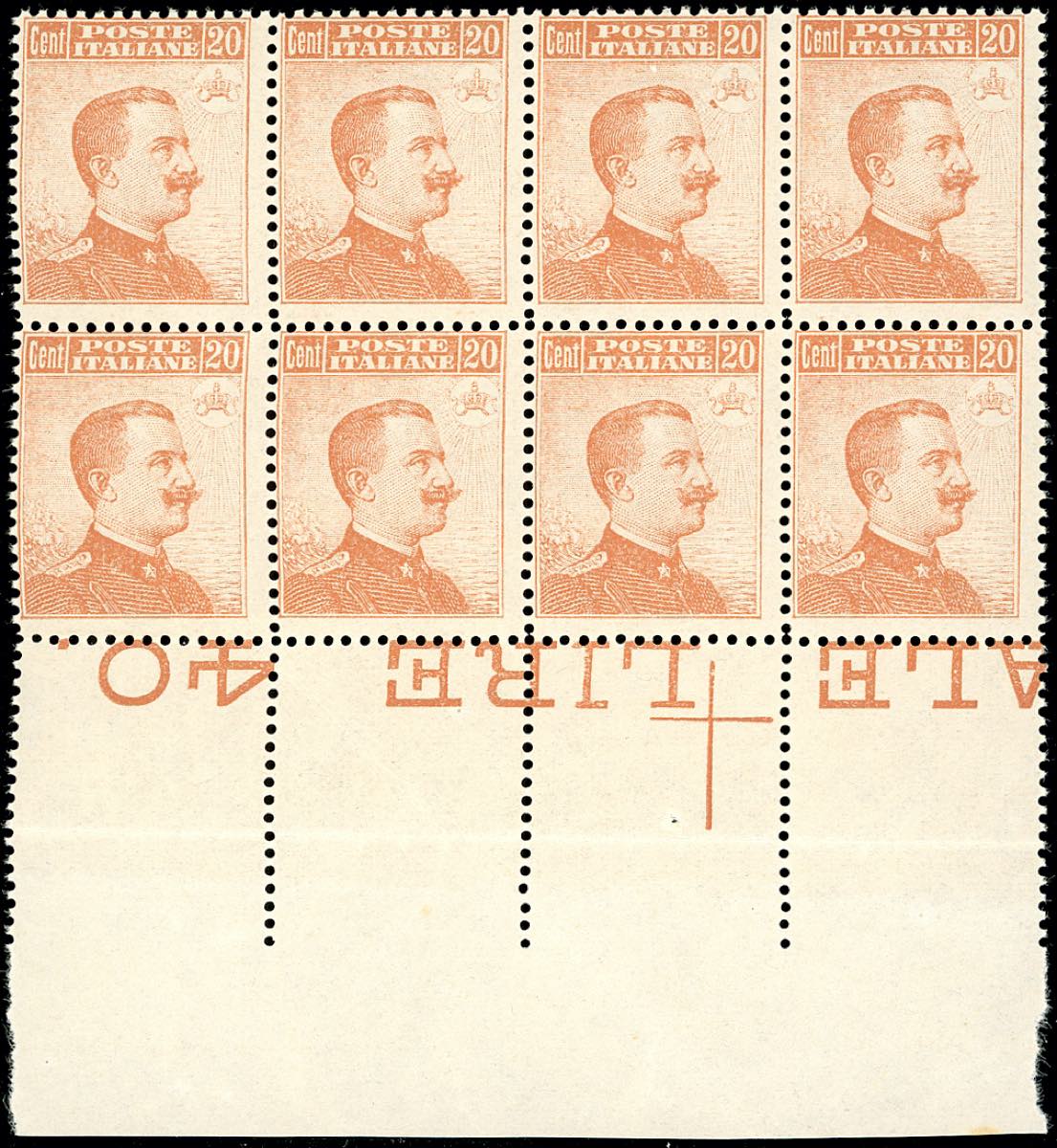 Lotto 1007 - 1916 - 20 cent. Michetti, senza filigrana (107), blocco di ...
