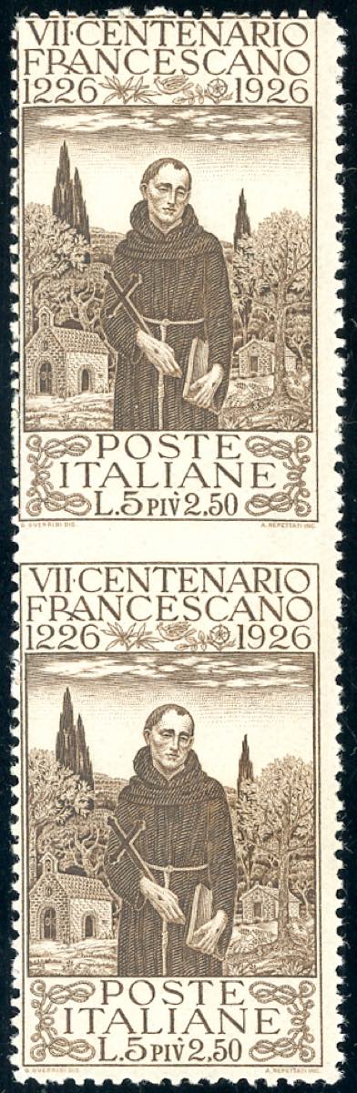 Lotto 1052 - 1926 - 5 + 2,50 lire San Francesco, coppia verticale non ...