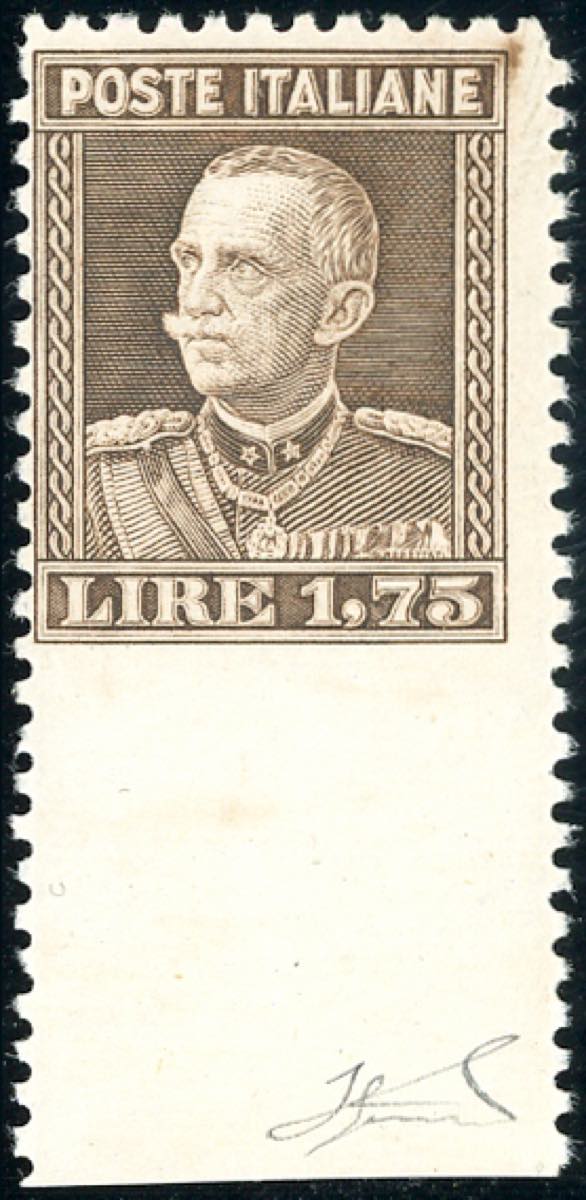 1927 - 1,75 lire Parmeggiani, dent. 11, non dentellato in basso (214e), nuovo, gomma integra, perfetto. Ferrario.