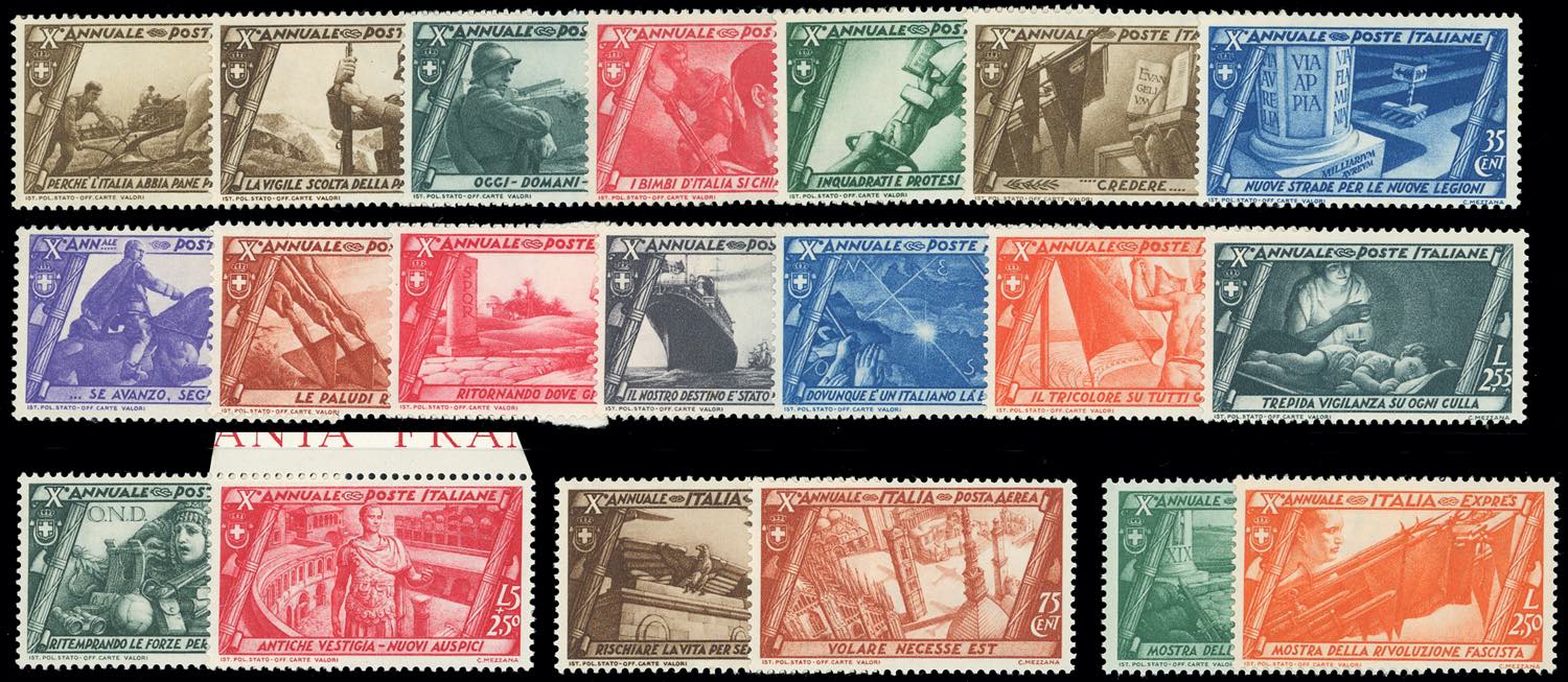 Lotto 1099 - 1932 - Marcia su Roma, serie completa (325/340+A+E), gomma ...