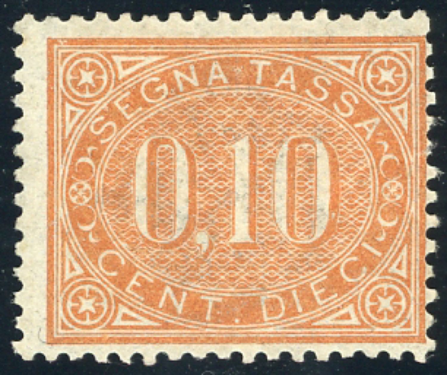 1869 - 10 cent. bruno arancio (2), discreta centratura per l'emissione, gomma originale, perfetto. Raro. G.Oliva, cert. Ferrario.