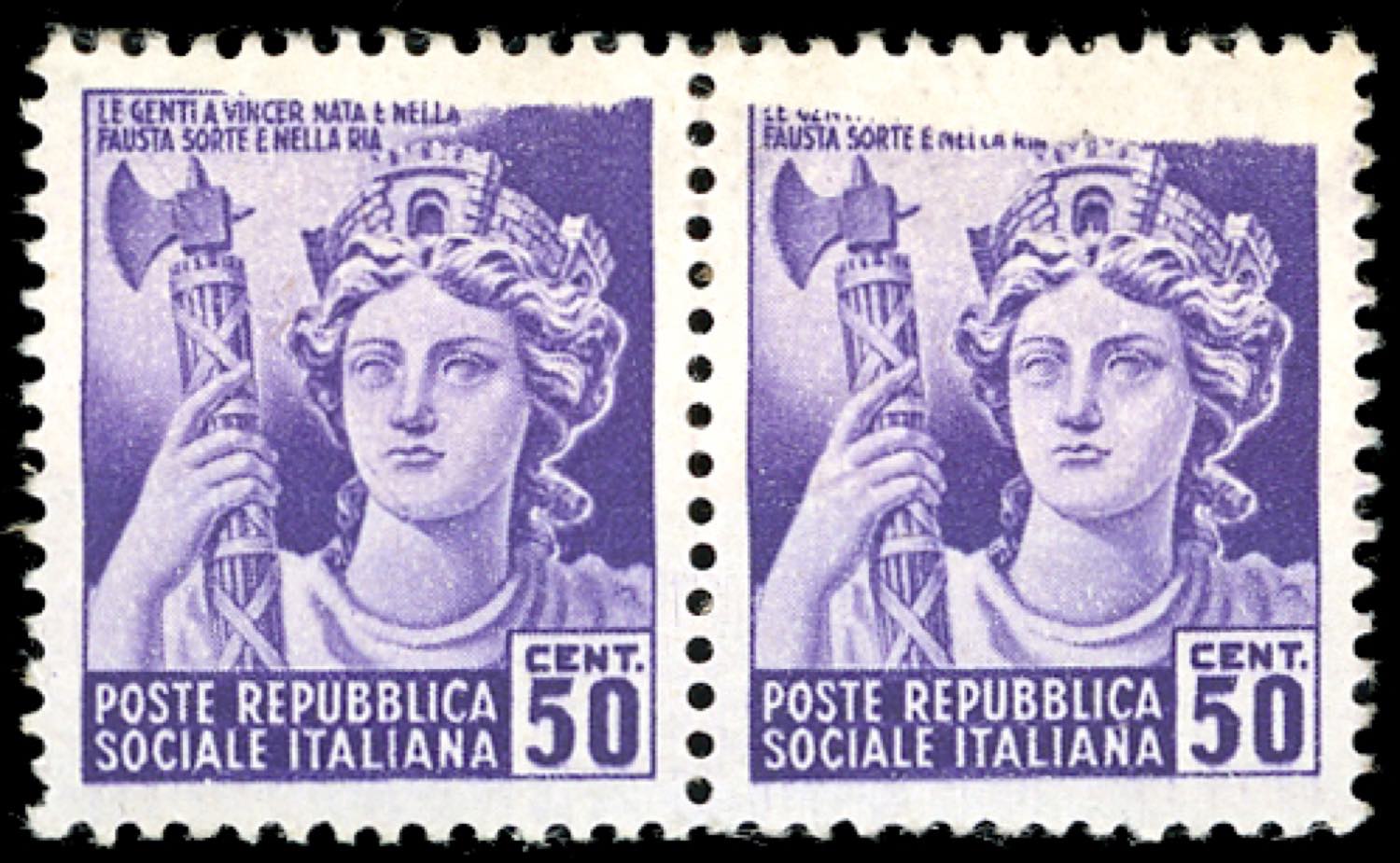 1944 - 50 cent. Monumenti Distrutti, coppia orizzontale stampa incompleta in alto poiché provenienti da stampa su carta ricongiunta ... Leggi tutto