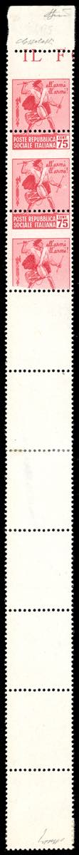 Lotto 1316 - 1944 - 75 cent. Tamburino, senza filigrana, striscia ...
