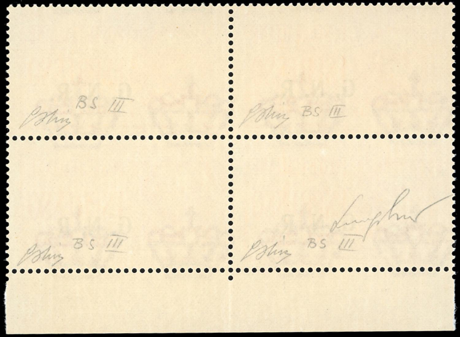 1943 - 2,50 lire soprastampato G.N.R. di Brescia, III tipo, blocco di quattro, l'esemplare pos. 99 con varietà punti piccoli dopo la N e ... Leggi tutto