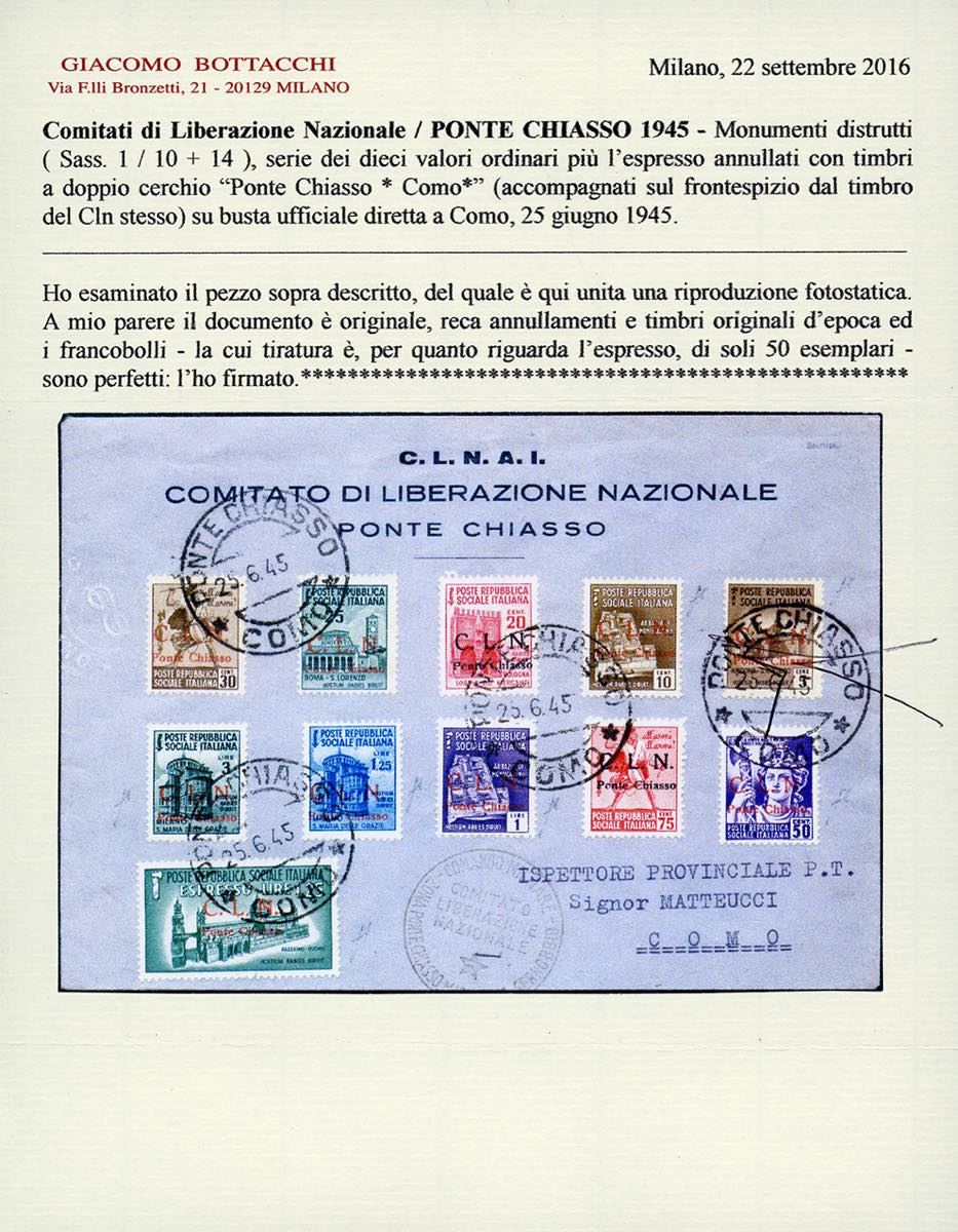 Lotto 1565 - PONTE CHIASSO 1945 - L'emissione completa (1/14), perfetta, ...