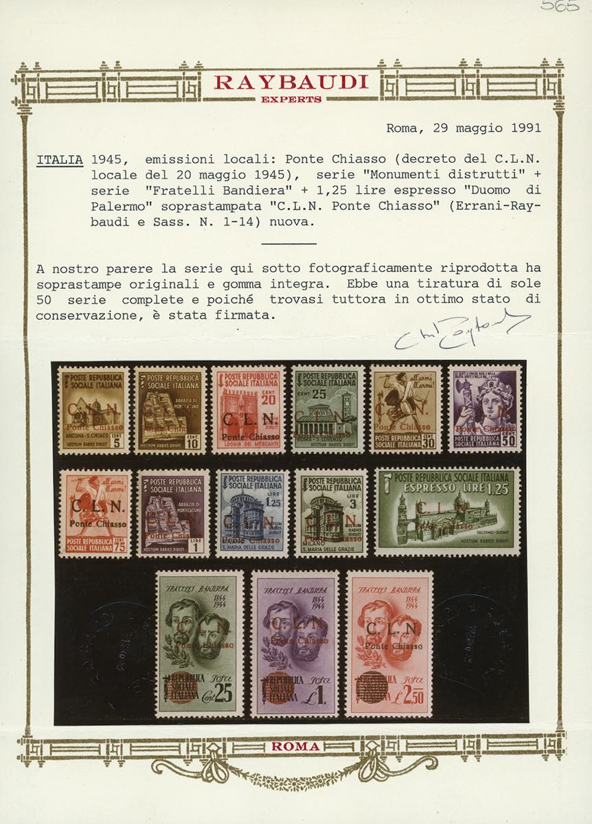 PONTE CHIASSO ESPRESSI 1945 - 1,25 lire soprastampato, punto piccolo dopo C (14a), gomma integra, perfetto. Dei soli 50 esemplari noti, si tratta dell'unico esemplare esistente con questa varietà. Rarità del settore! Cert. Oro Raybaudi.