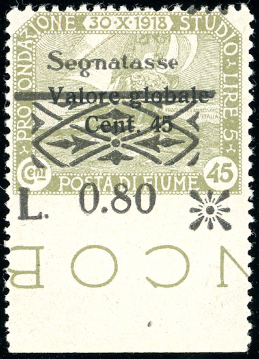 Lotto 1629 - FIUME SEGNATASSE 1921 - 0,80 lire su 45 cent., non ...