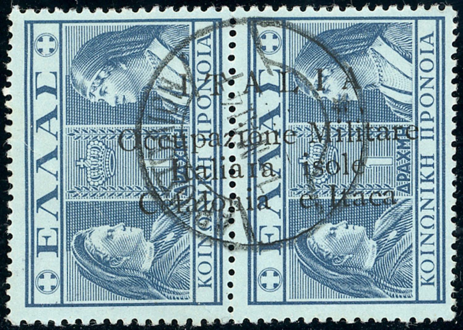 EMISSIONI DI ARGOSTOLI 1941 - 1 d. + 1 d. Previdenza Sociale, varietà "ITALIAIA" al posto di "ITALIANA" (31q), usata, perfetto. Molto ... Leggi tutto