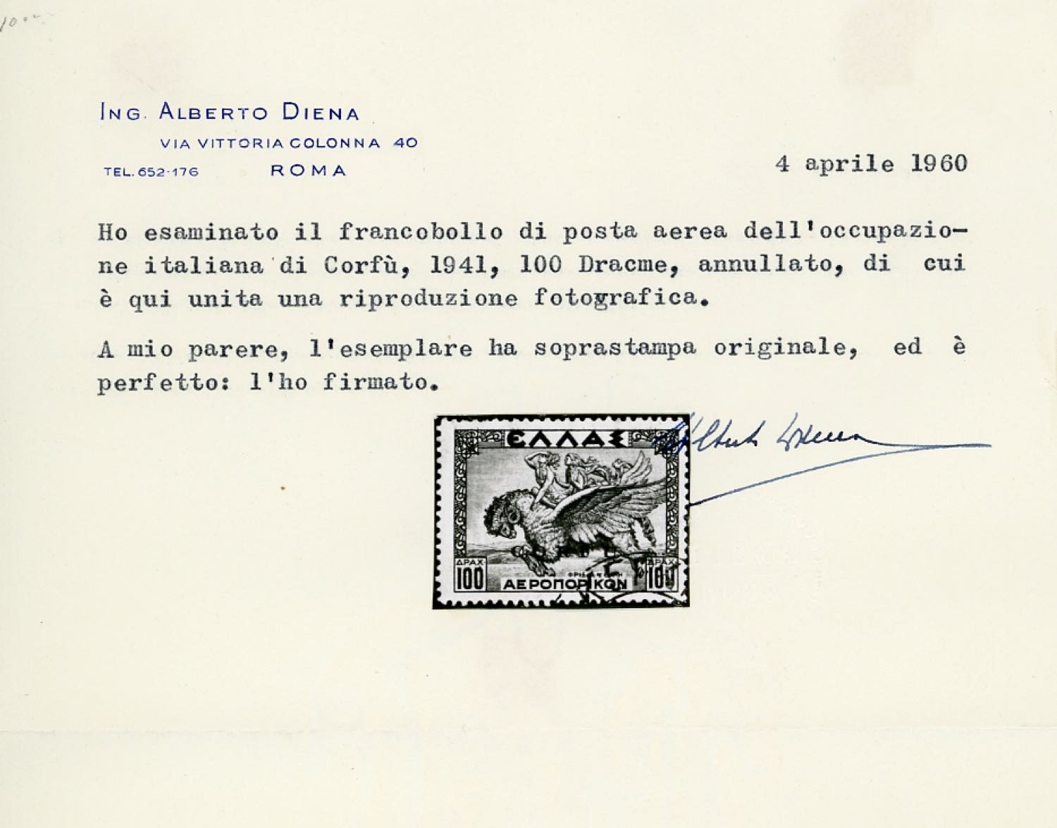 Lotto 1664 - CORFU' POSTA AEREA 1941 - 100 d. soprastampato (12), usato, ...