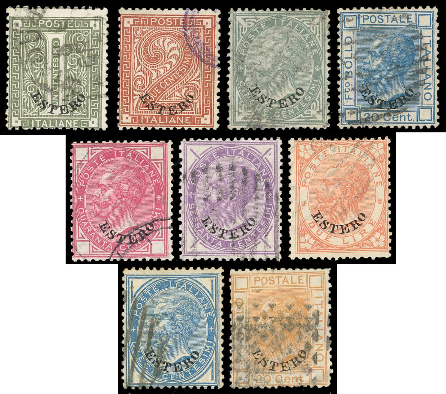 Lotto 1701 - EMISSIONI GENERALI 1874/79 - Nove valori usati ...