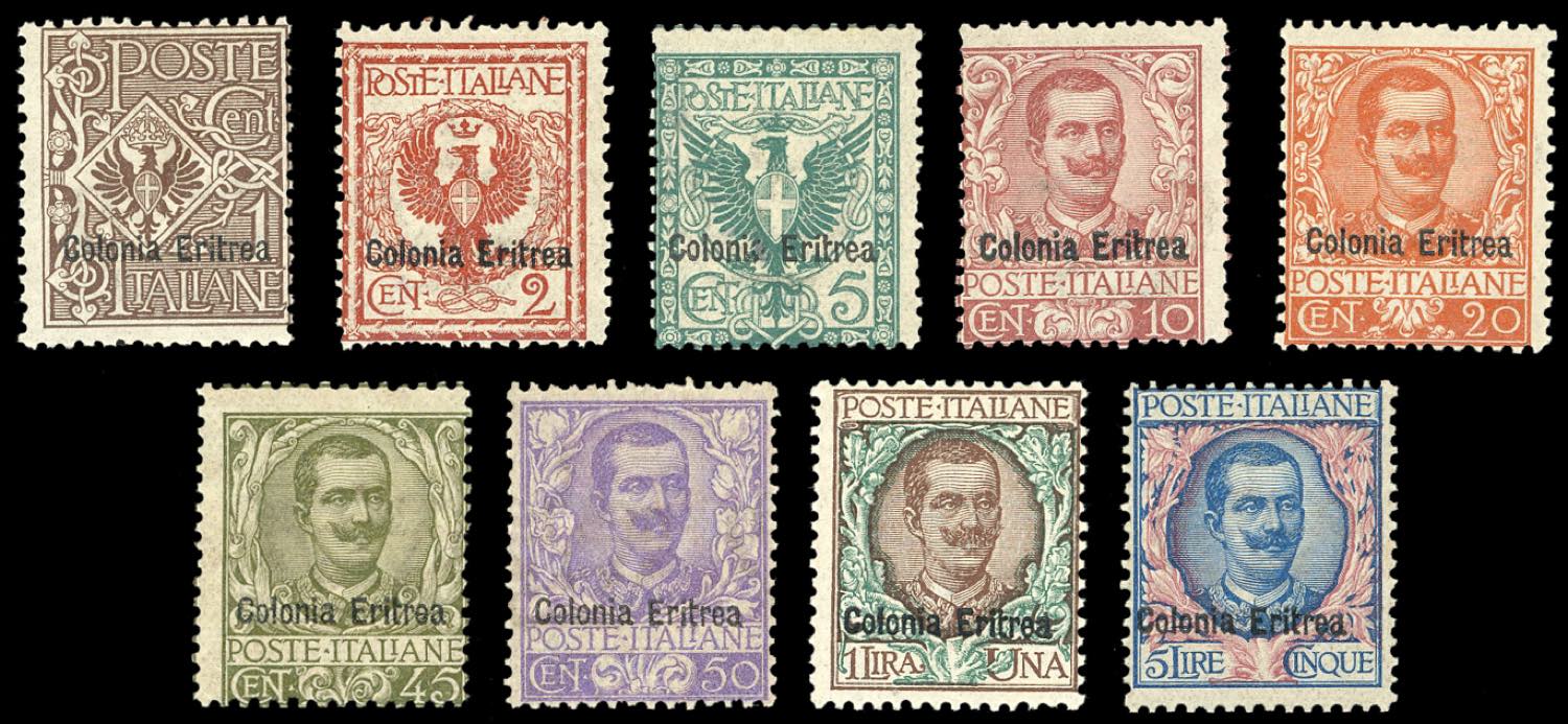 1903 - Floreale, serietta di nove valori (19/23,26/29), nuovi, gomma originale integra, perfetti.
