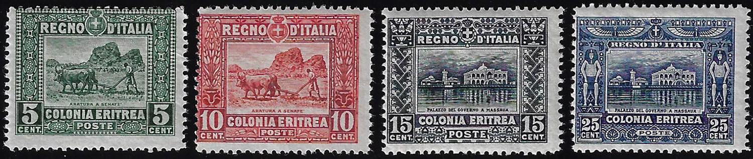 1910/14 - Soggetti africani, serie completa dent. 13 1/4 (34/37), nuovi, gomma originale integra, perfetti. Ferrario.