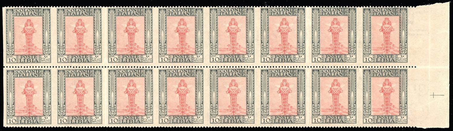 1921 - 10 cent. Pittorica, non dentellato verticalmente (24m), blocco di sedici esemplari, bordo di foglio, gomma integra, perfetto.