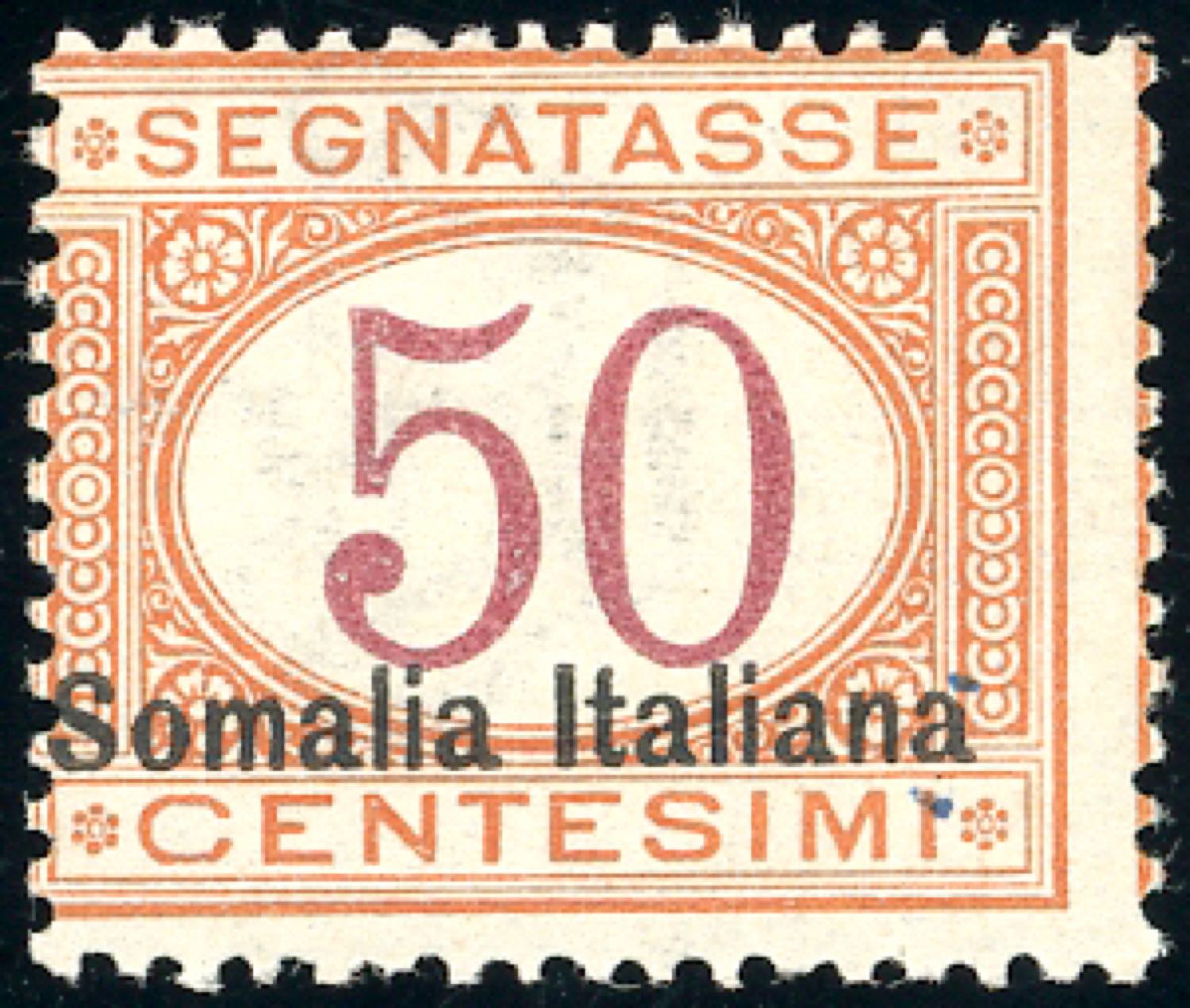 SEGNATASSE 1920 - 50 cent. soprastampato in basso, soprastampa fortemente spostata a sinistra (28ac), gomma originale, perfetto. Ferrario.