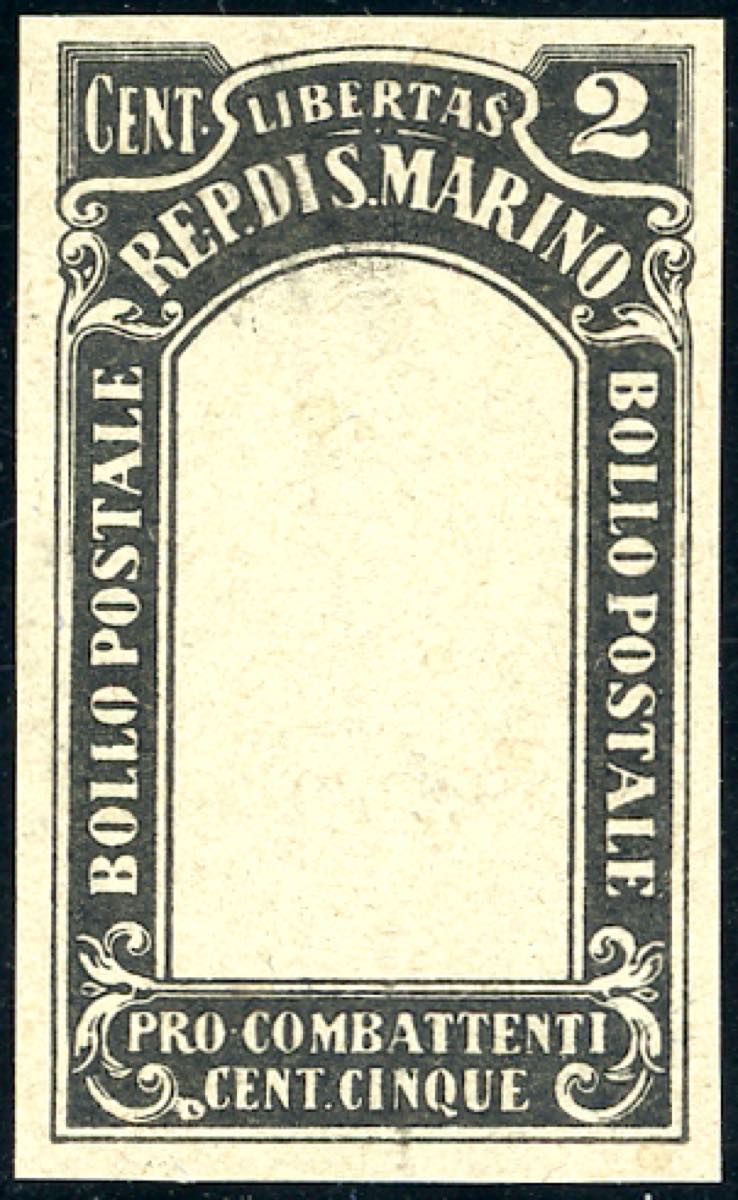 1918 - 2 + 5 cent. Pro combattenti (54), prova di stampa in nero della solo cornice su carta avorio, non dentellata e senza gomma come ... Leggi tutto