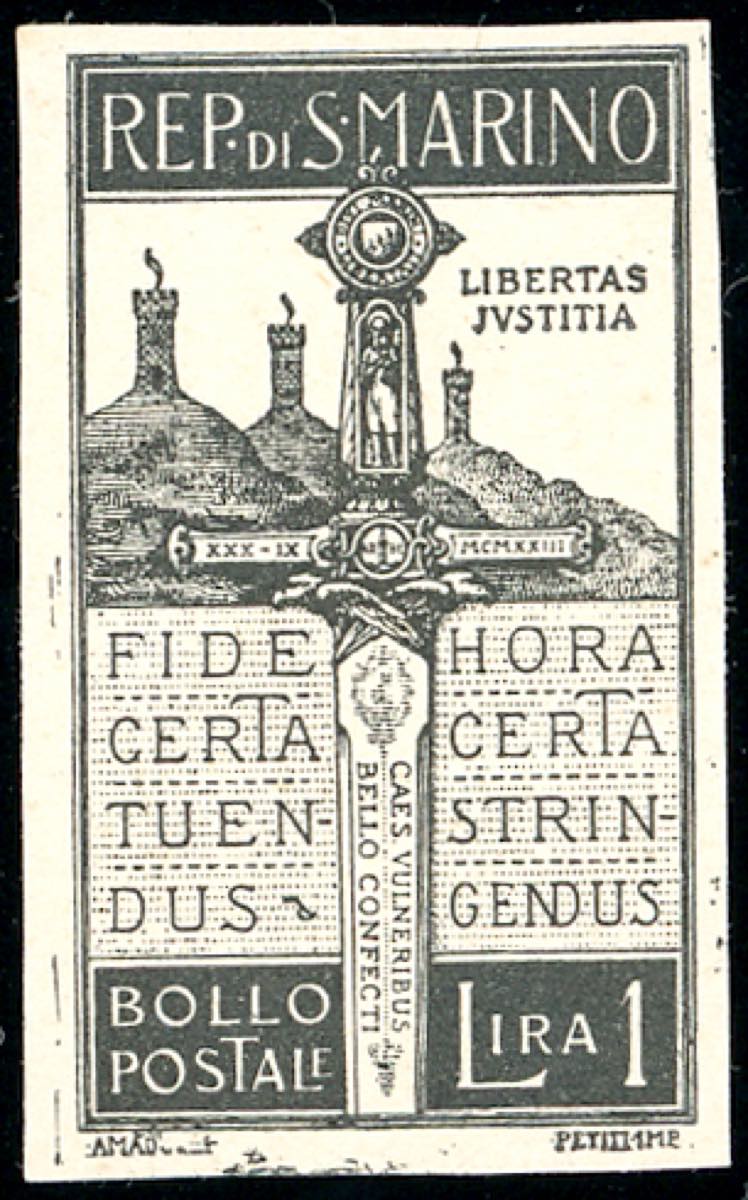 Lotto 2081 - 1923 - 1 lire Pro Volontari (97), prova in nero su carta ...