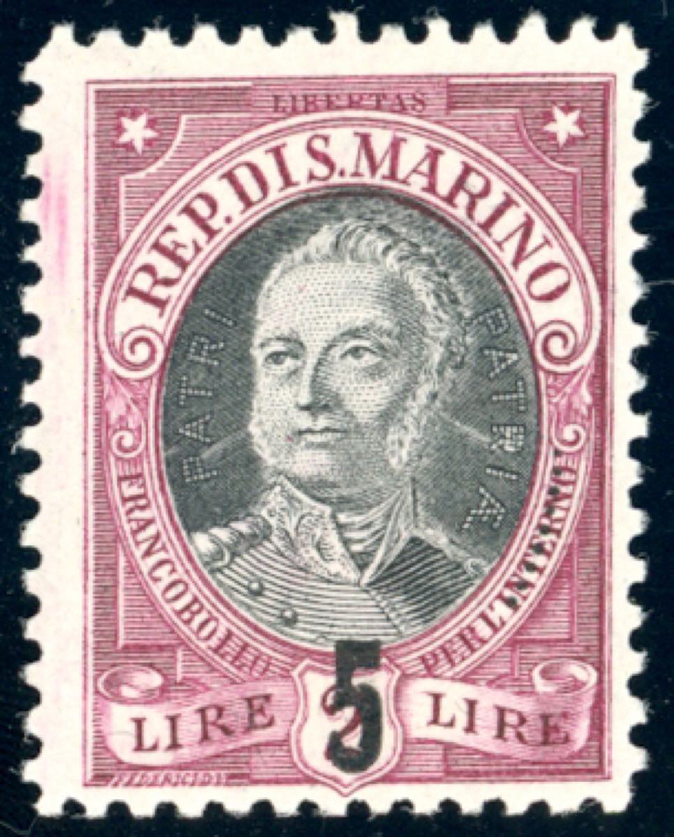 1927 - 5 lire su 2 lire Onofri, nove puntini invece di 13 in soprastampa (132a), gomma originale integra, perfetto. Ferrario.