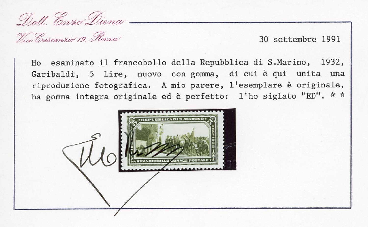 1932 - Garibaldi (168/175), gomma originale integra, perfetti. Ottima qualità. Cert. E.Diena per l'alto valore.