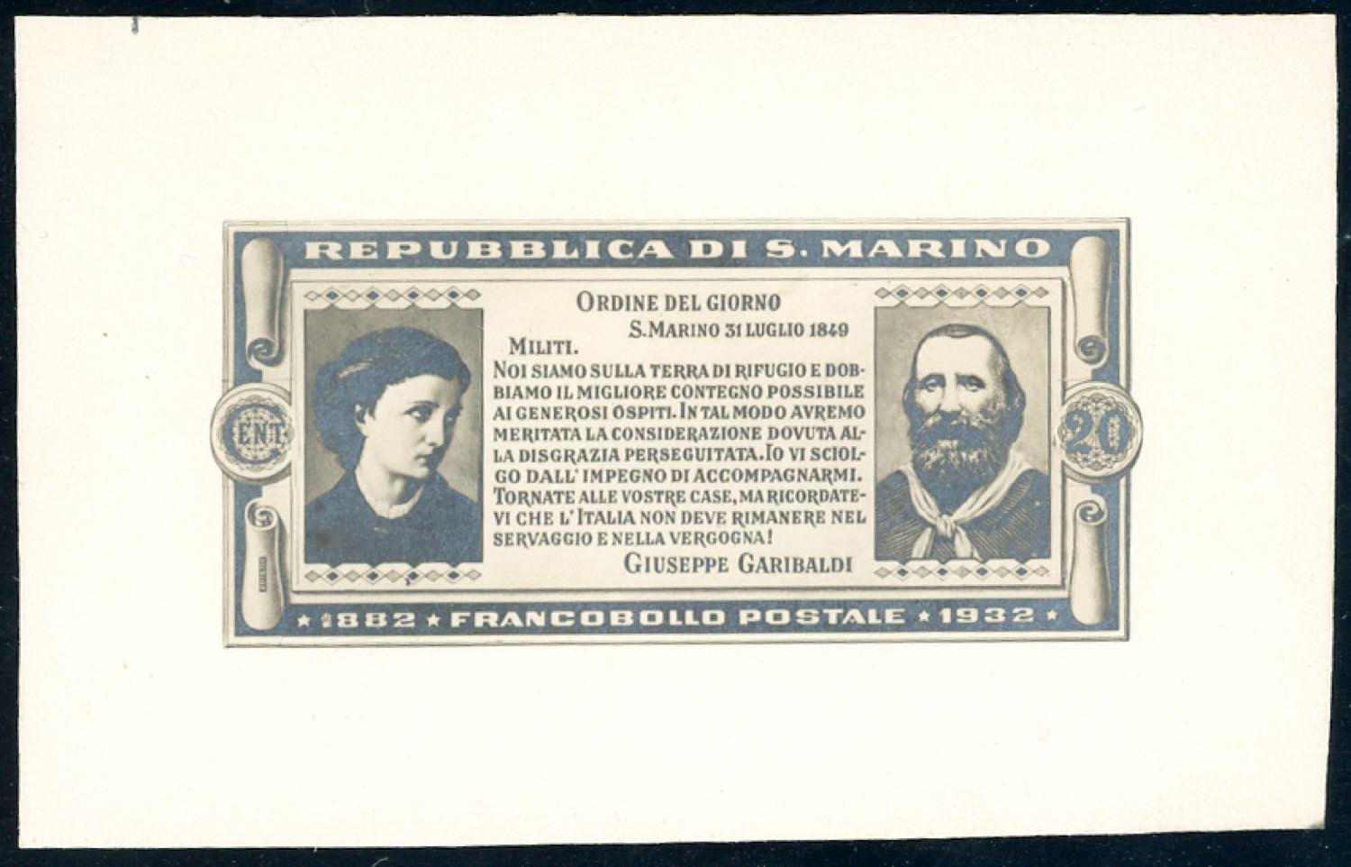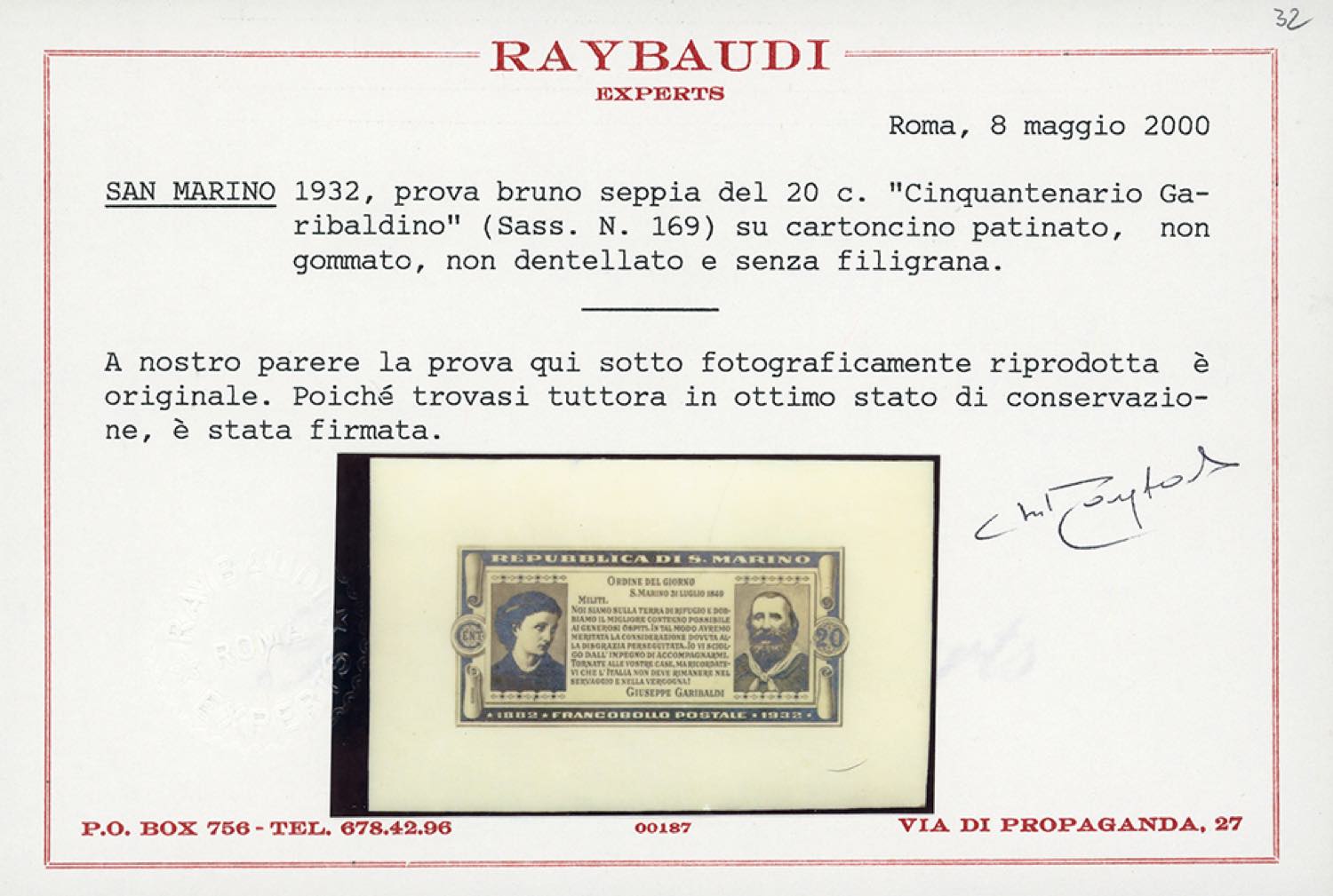 Lotto 2098 - 1932 - 20 cent. Garibaldi (169), prova di E.Federici in ...