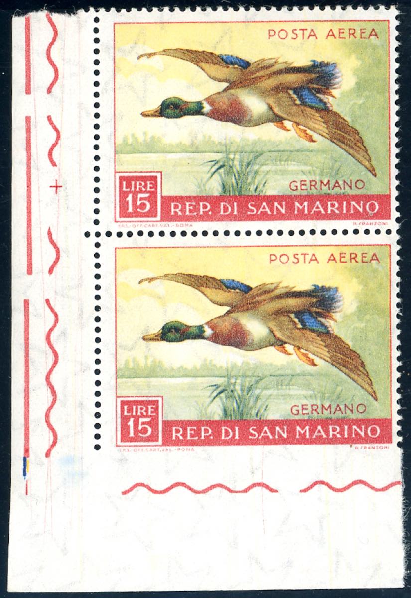 Lotto 2247 - 1959 - 15 lire Uccelli, non dentellato in basso, in coppia ...