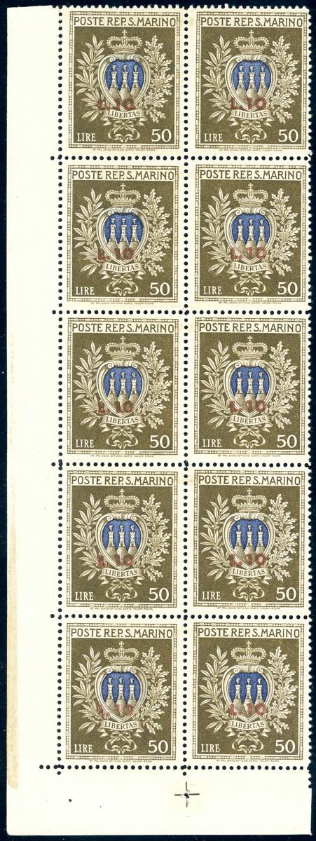 Lotto 2275 - 1946 - 10 lire su 50 lire Pro Opere Assistenza, minifoglio ...
