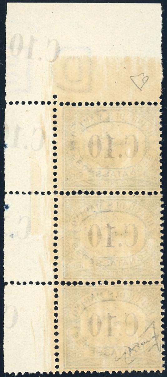 Lotto 2308 - 1925 - 10 cent., striscia verticale di tre, angolo di ...