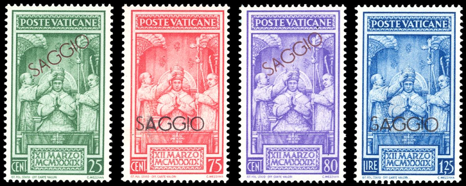 1939 - Incoronazione Pio XII (68/71), soprastampa SAGGIO, gomma originale integra, perfetti. Rari. Cert. Ferrario.