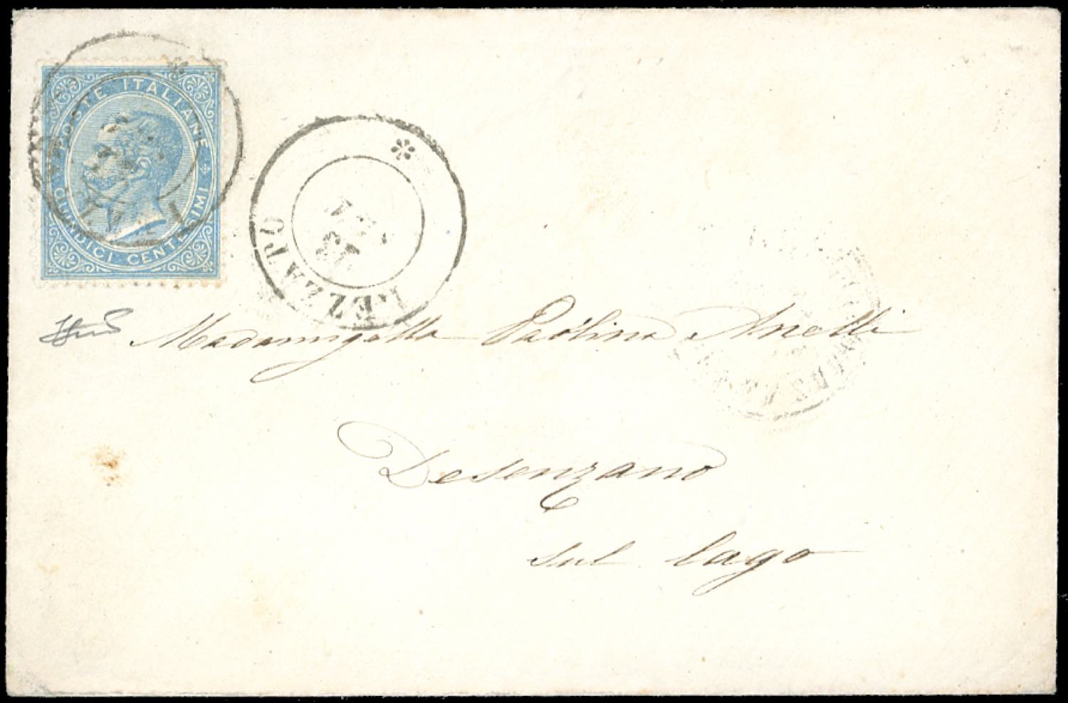 REZZATO, sardo italiano senza anno, non catalogato - 15 cent. (Regno L18), perfetto, su busta del 23/9/1864 a Desenzano. Interessante. Ferrario.