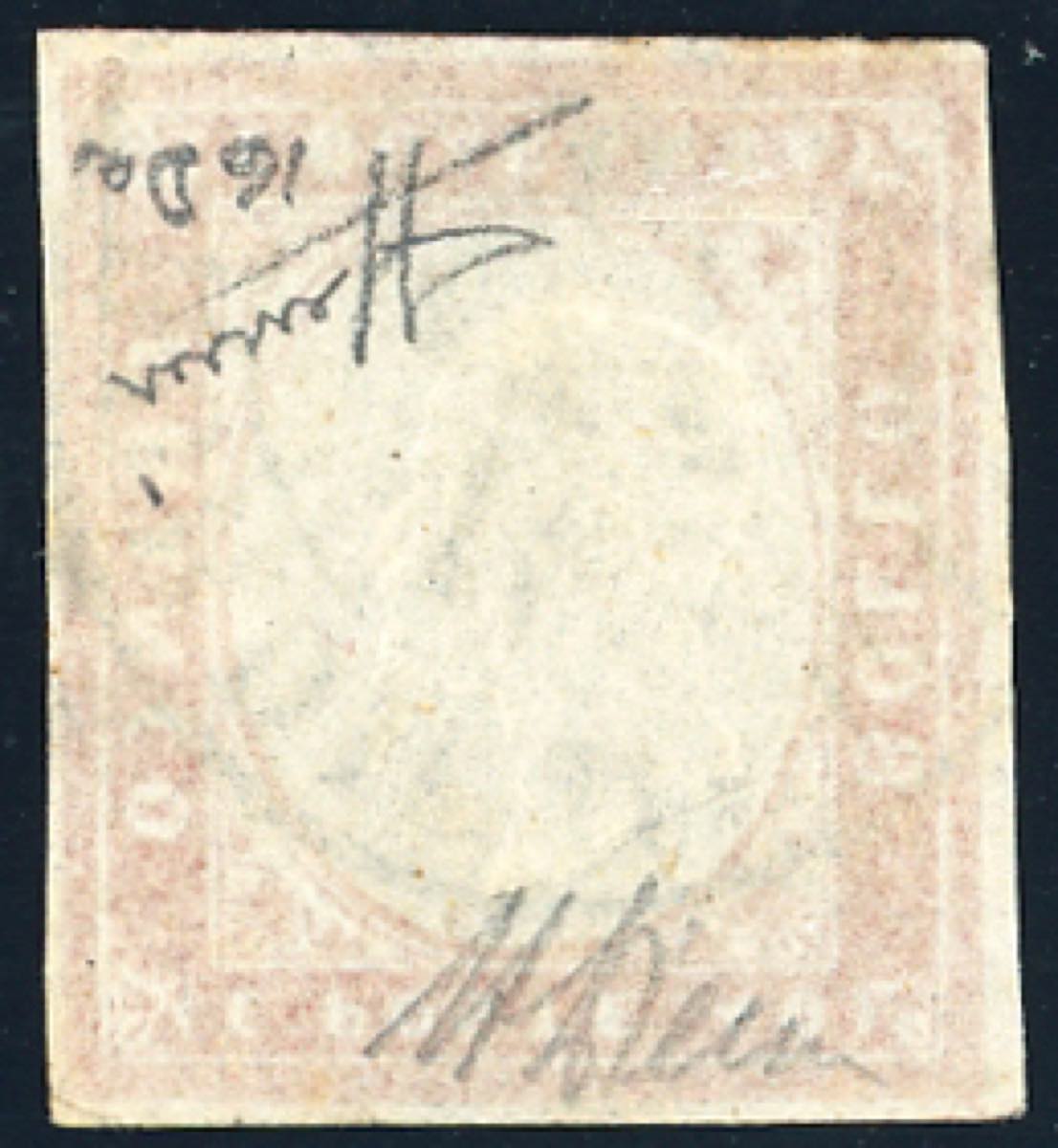 1861 - 40 cent. rosso vermiglio, EFFIGIE CAPOVOLTA (16Da), usato a Bordighera 14/10/1861, perfetto. Molto fresco e raro! A.Diena, cert. ... Leggi tutto