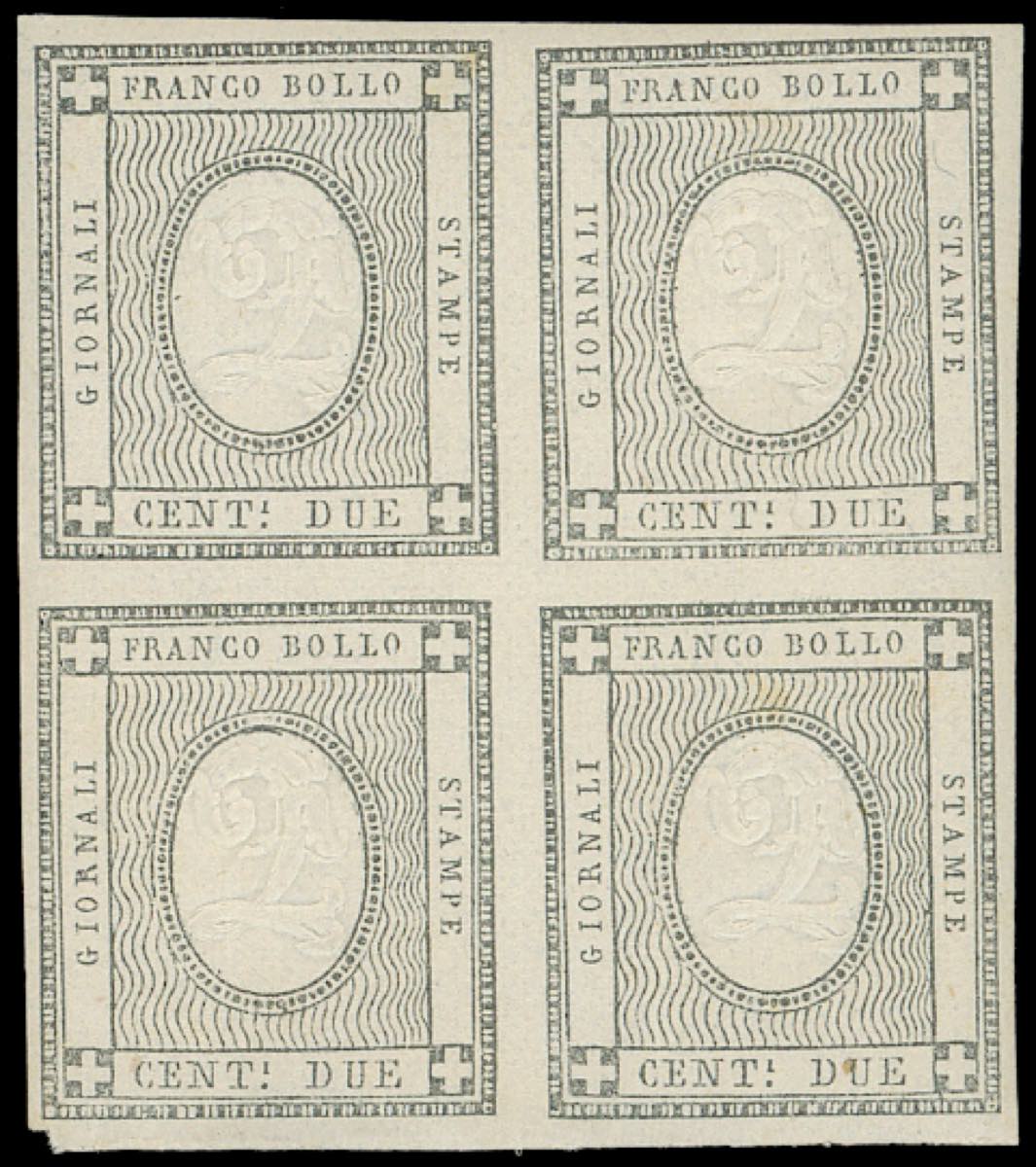 Lotto 319 - 1861 - 2 cent. grigio nero (20), blocco di quattro, gomma ...
