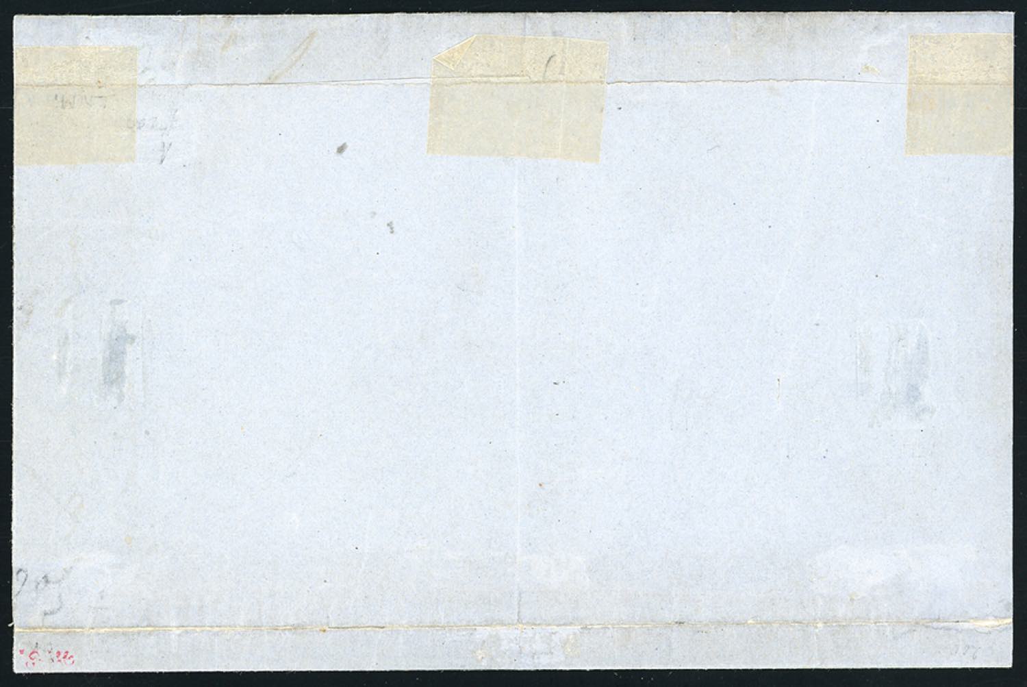 1860 - 1/2 grano, tinta intermedia tra l'arancio scuro e l'arancio carico, I tavola, ritocco pos. 19, 1/2 grano giallo arancio chiaro, I tavola, tre esemplari, tutti carta di Napoli (1e/f,1aa), perfetti e ben marginati, su fresca sovracoperta di lettera da Messina 1/3/1860 a Cefalù. Splendida e rarissima. Valore di catalogo astronomico. Cert. Giulio Bolaffi per esteso.