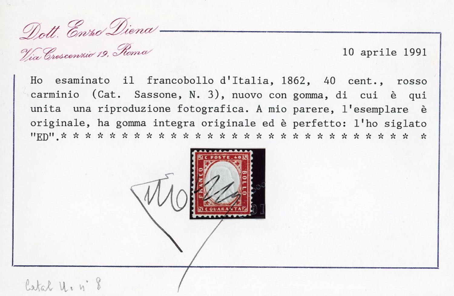 Lotto 420 - 1862/1863 - 20, 40 e 80 cent. dentellati Matraire, 2 cent. ...