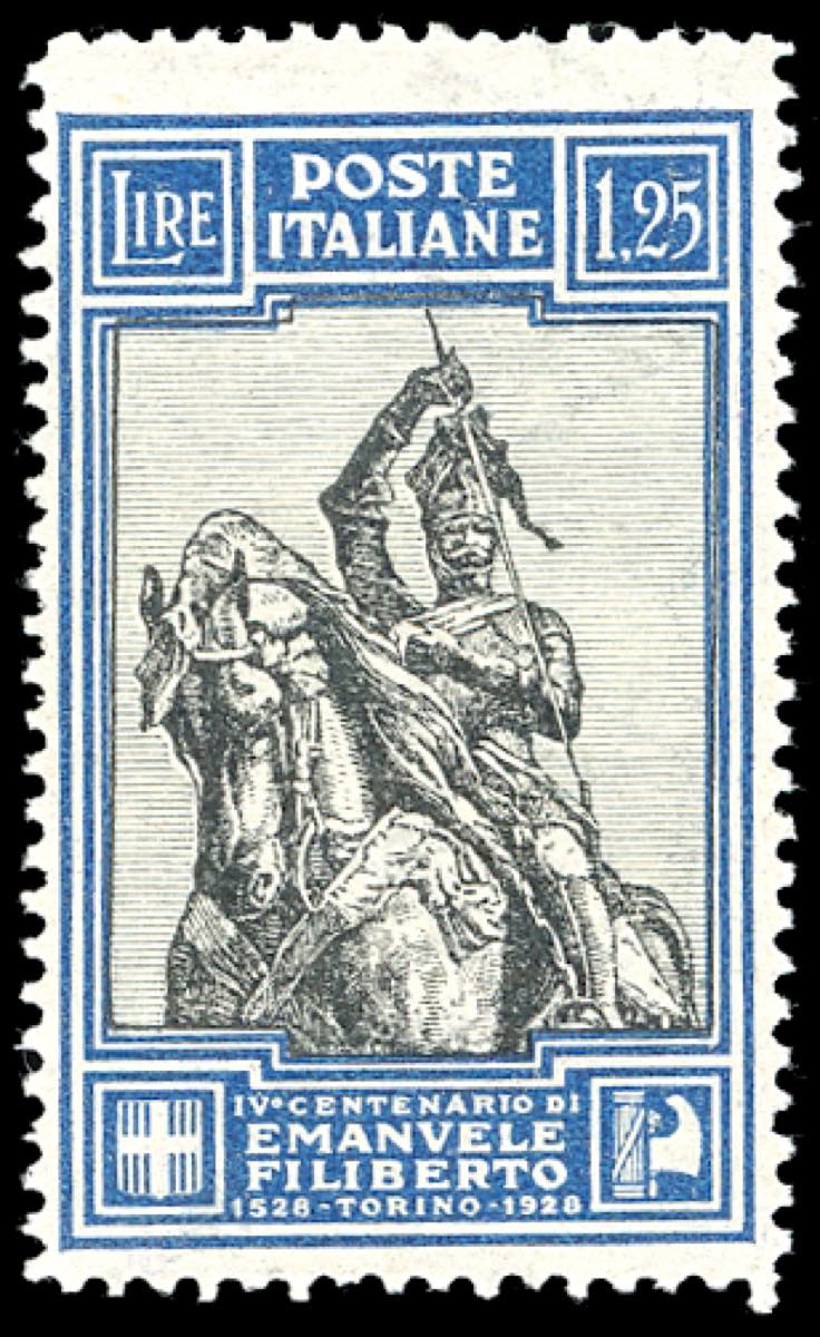 1928 - 1,25 lire Emanuele Filiberto, dent. 13 3/4 (235/I), nuovo, gomma originale integra, perfetto e ben centrato. Cert. Diena.