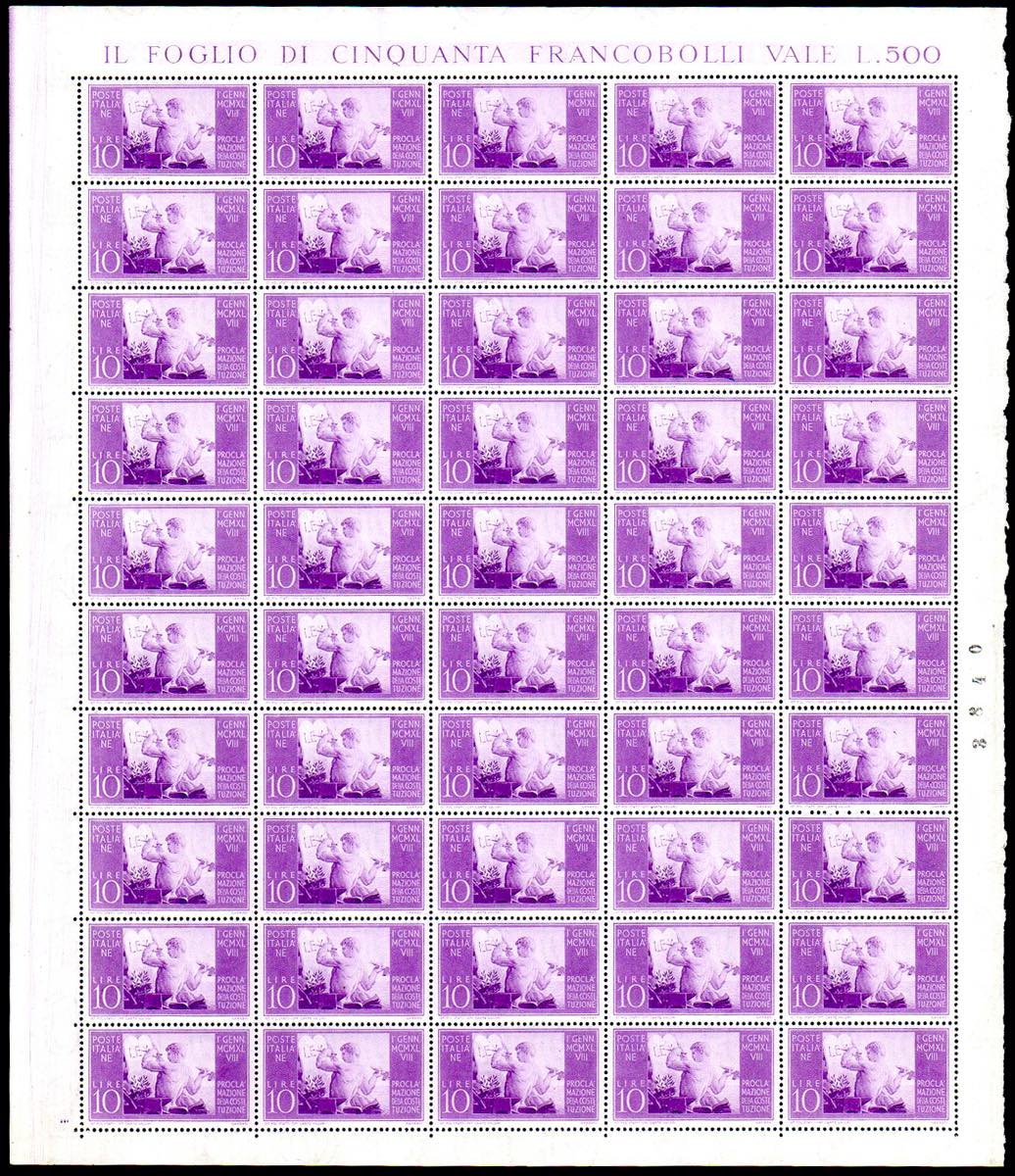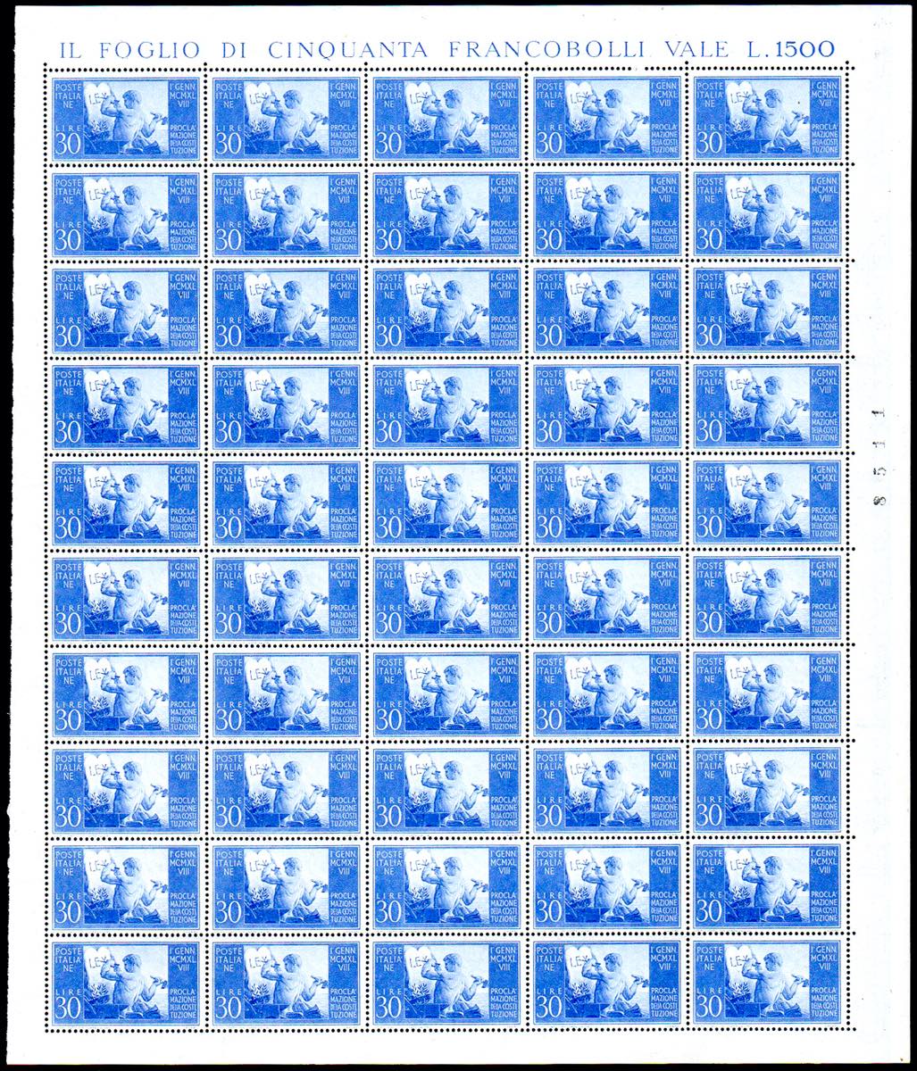 Lotto 780 - 1948 - Costituzione, serie completa in foglio di 50 ...