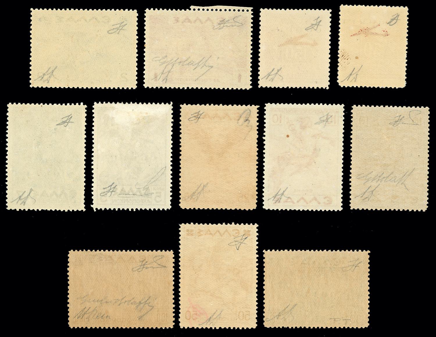 CORFU' POSTA AEREA 1941 - Soprastampati, serie completa (1/12), gomma originale, perfetti. Rari. Tutti firmati da noti periti, cert. ... Leggi tutto