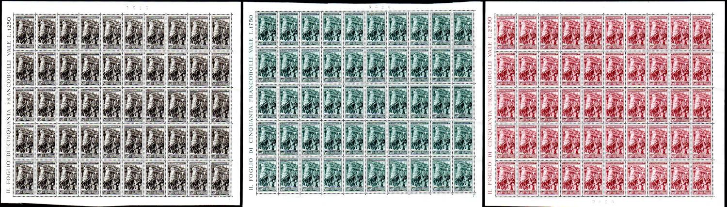 1950 - Guardia Palatina, serie completa in fogli di 50 esemplari (140/142), nuovi, gomma originale integra, perfetti. Bellissimi.