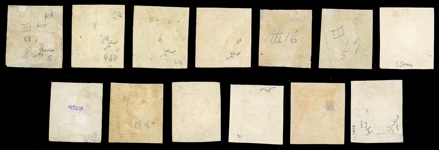 SICILIA 1859 - Tredici francobolli, per lo più usati, dell'emissione. Qualità mista, alcuni esemplari firmati. Alto valore di catalogo.