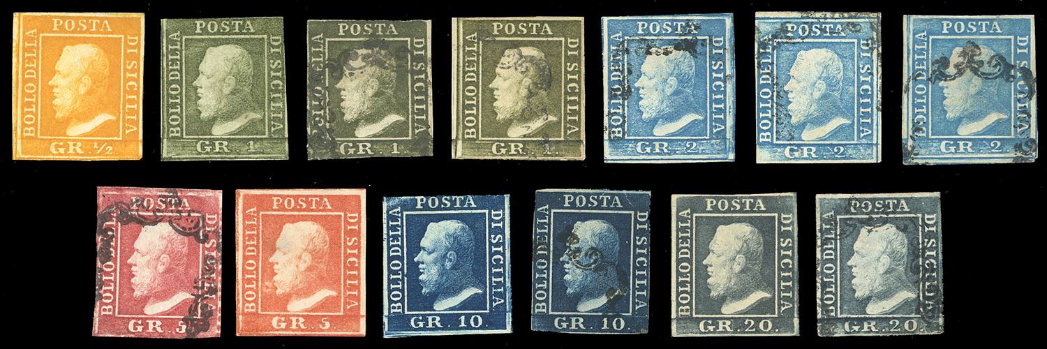 Lotto 1387 - SICILIA 1859 - Tredici francobolli, per lo più usati, ...
