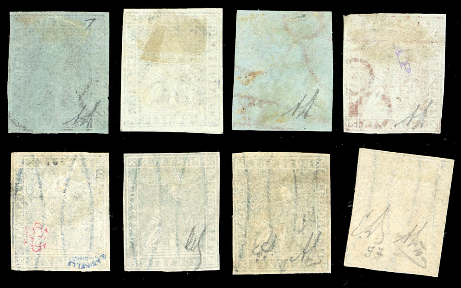 TOSCANA 1851/1857 - Otto esemplari usati delle emissioni del periodo, per lo più firmati da noti periti.