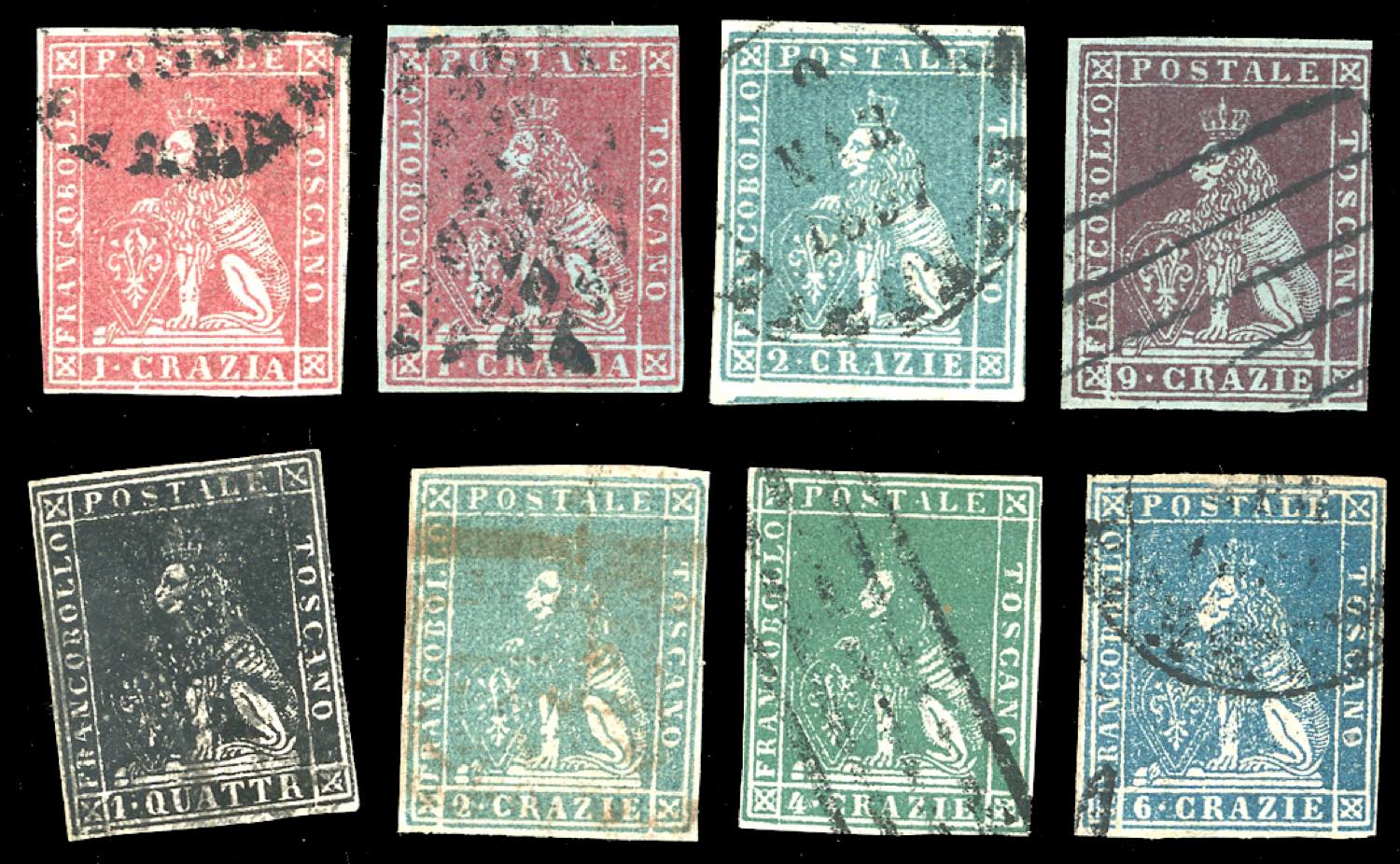 Lotto 1389 - TOSCANA 1851/1857 - Otto esemplari usati delle emissioni ...