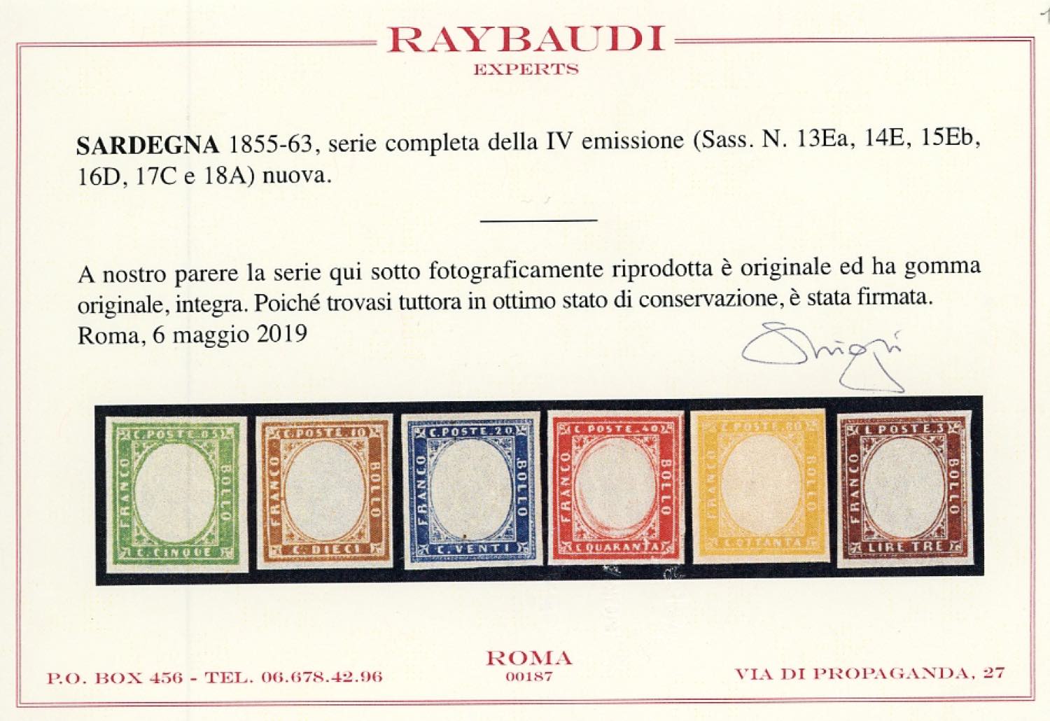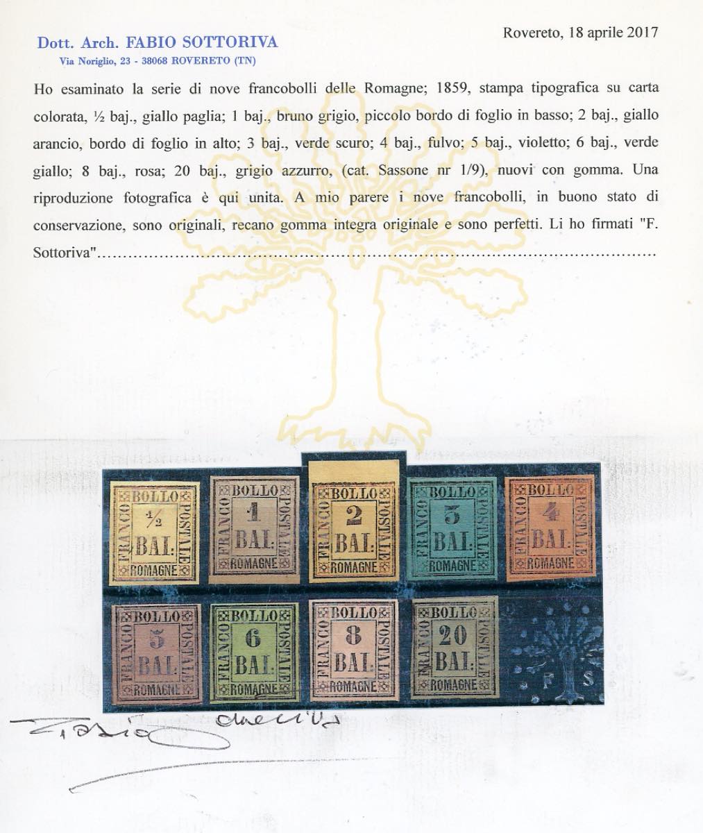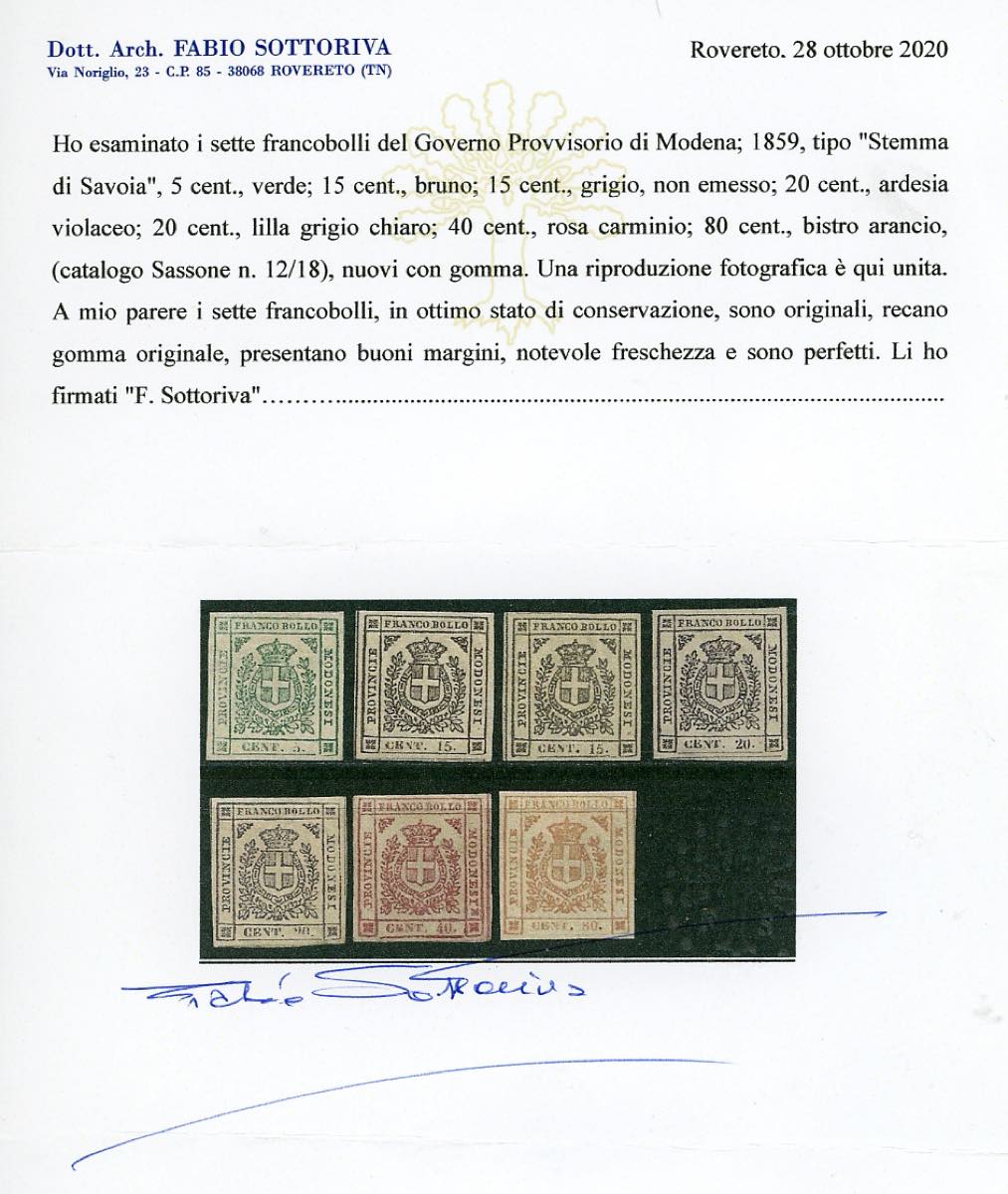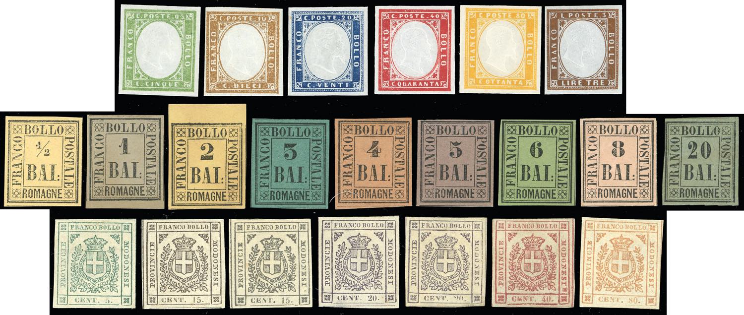 ANTICHI STATI ITALIANI 1859/1863 - Lotto di tre serie nuove: Romagne, Modena Governo Provvisorio, IV emissione di Sardegna, con diversi certificati. Alto valore di catalogo, da esaminare.