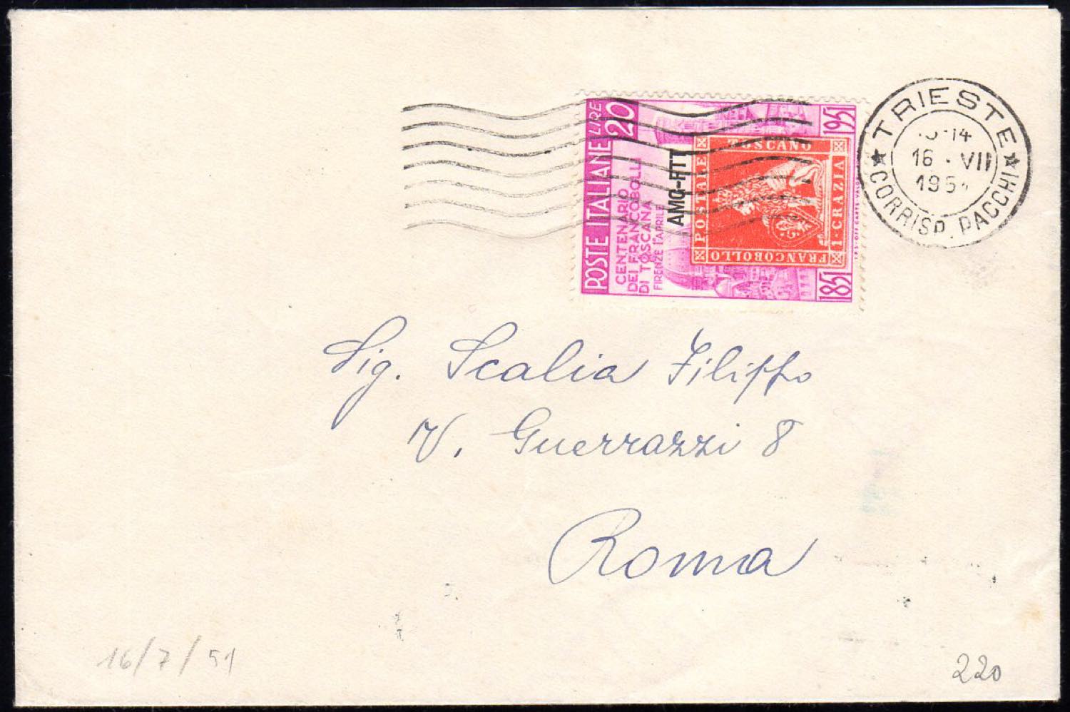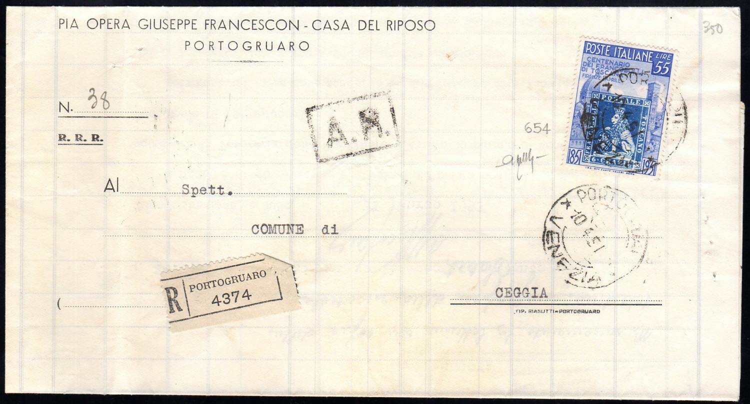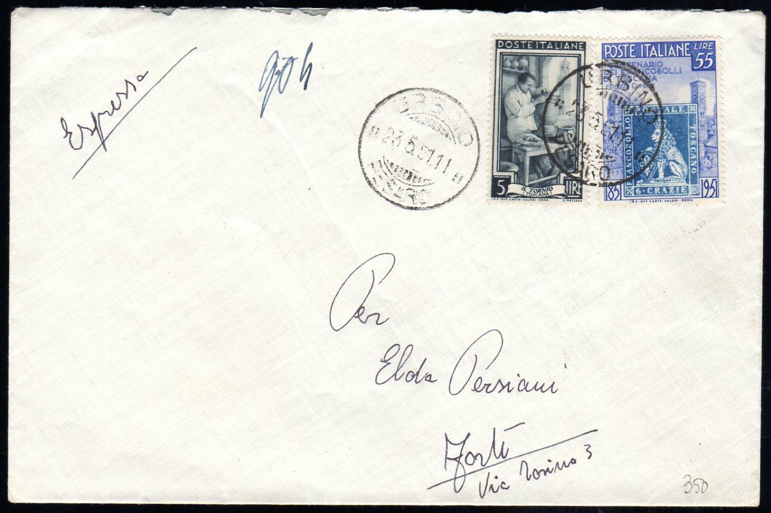REPUBBLICA ITALIANA 1951 - Sei lettere affrancate con i francobolli del Centenario di Toscana, tra cui un raro uso del 55 lire isolato su ... Leggi tutto