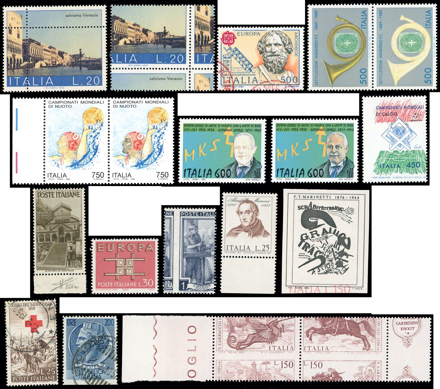 REPUBBLICA ITALIANA VARIETA' 1947/1990 - Bell'insieme di 24 francobolli con varietà del periodo. Insieme non comune, qualità ottima. Ex collezione Lemano.