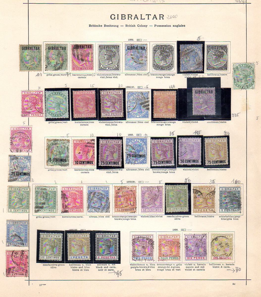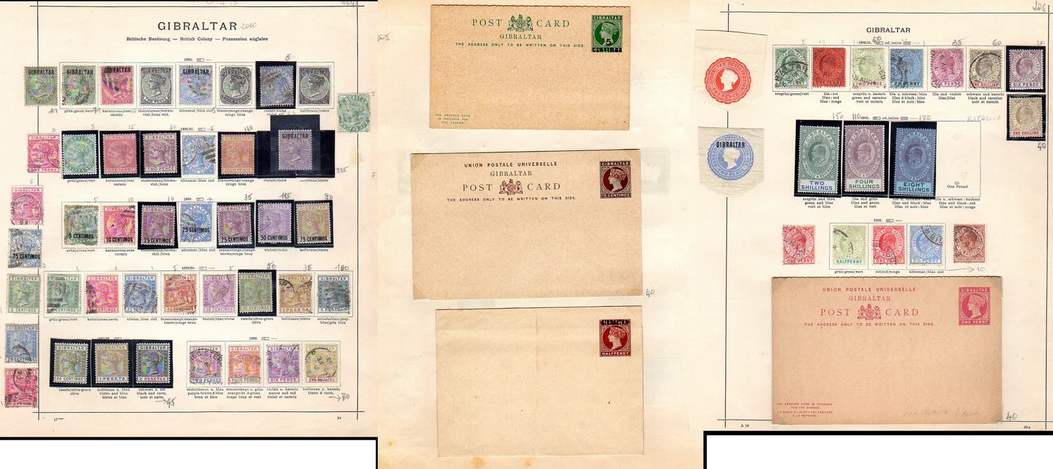 GIBILTERRA 1886/1906 - Collezione di francobolli, nuovi e usati, in fogli d'album artigianali. Buon valore di catalogo.