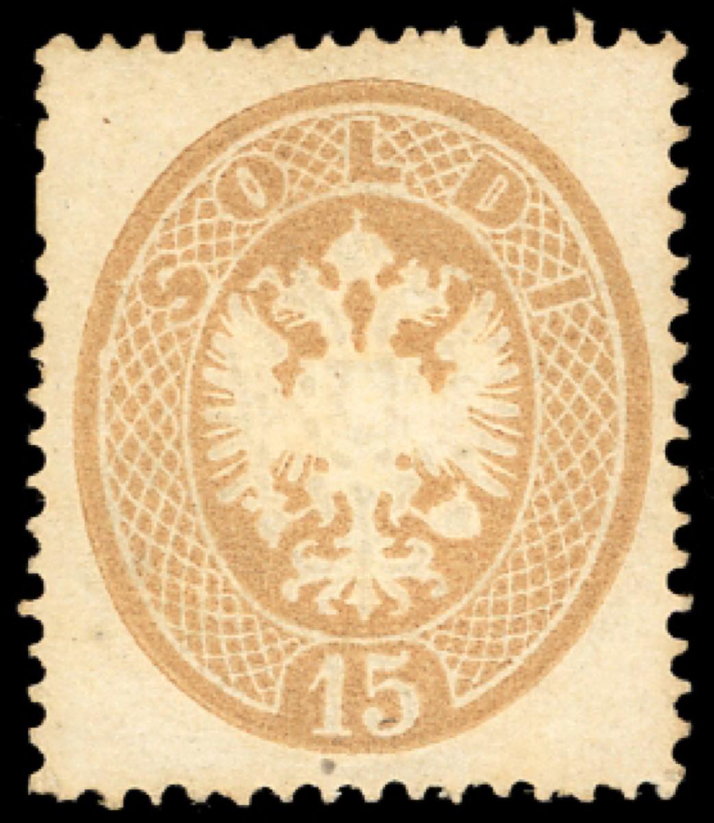 Lotto 254 - 1863 - 15 soldi bruno, dent. 14 (40), gomma originale, ...