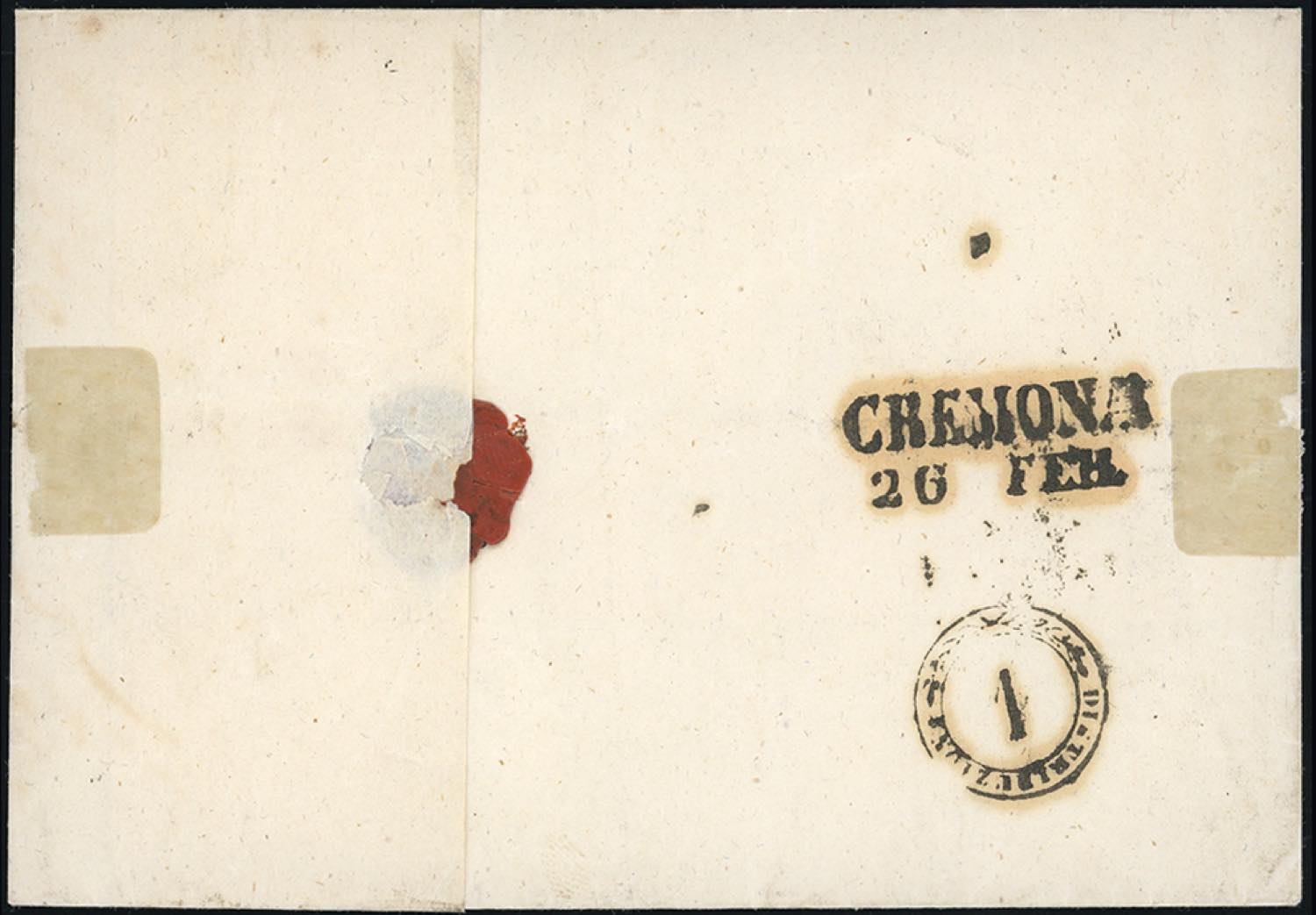 MELEGNANO, SD punti 12 - 15 cent. (3), giusto in un punto a sinistra, su sovracoperta di lettera del 25/2/1851 per Cremona. Molto fresca. ... Leggi tutto