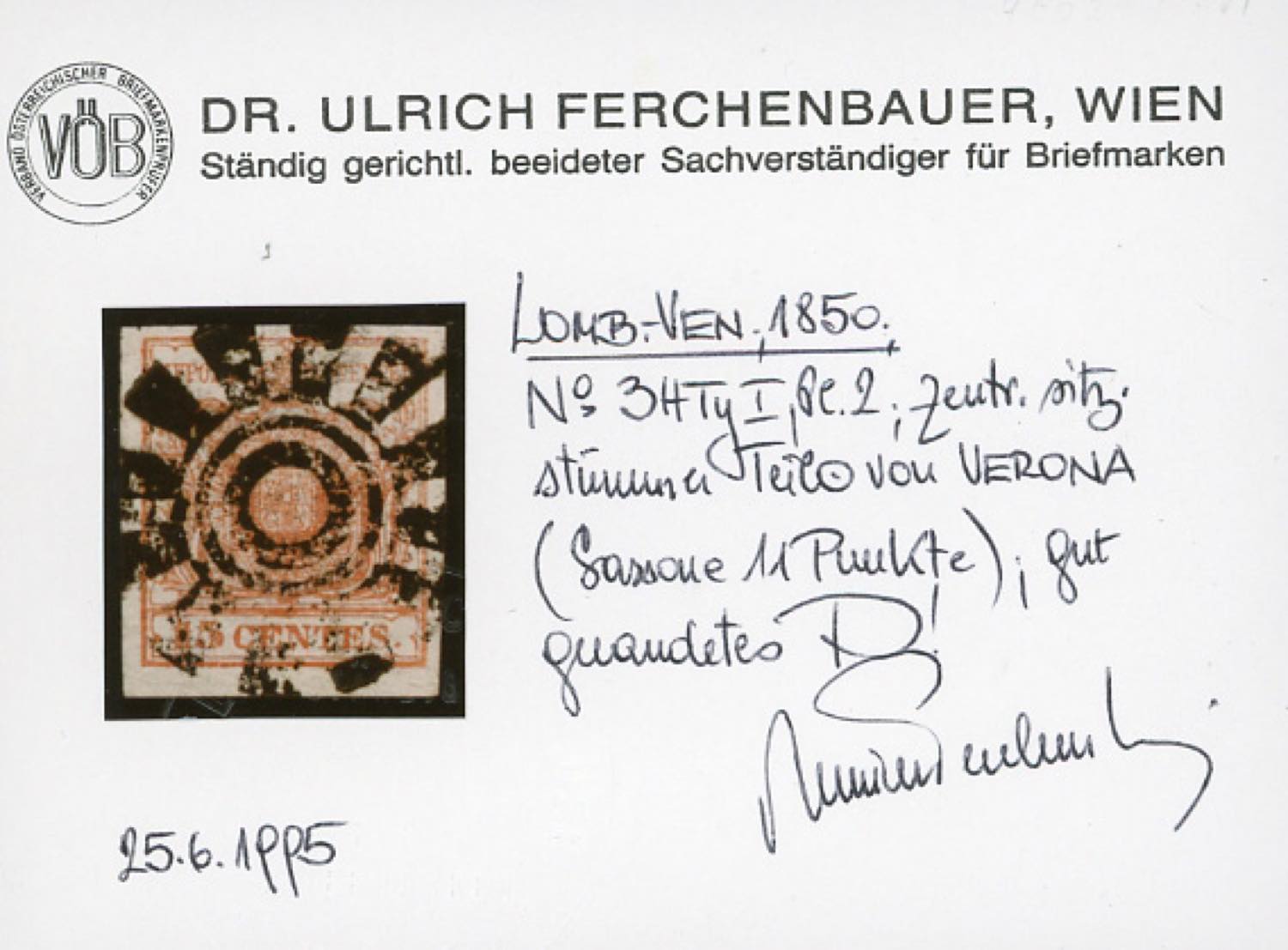 VERONA, M punti 11 - 15 cent. (3), perfetto, usato. Bello. Cert. Ferchenbauer.