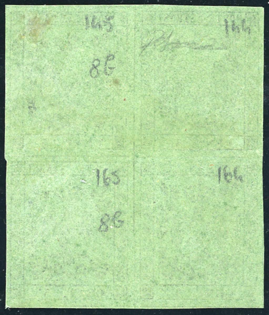 Lotto 341 - 1855 - 5 cent. verde oliva, blocco di quattro con i due ...