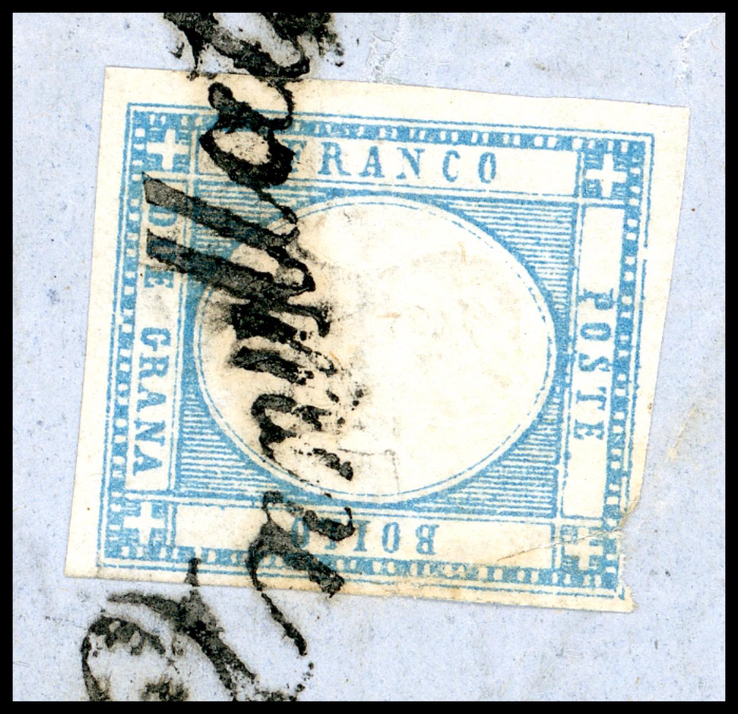 1861 - 2 grana azzurro chiaro (20), due strisce di tre e due singoli, uno dei quali applicato al verso, su sovracoperta di lettera ... Leggi tutto