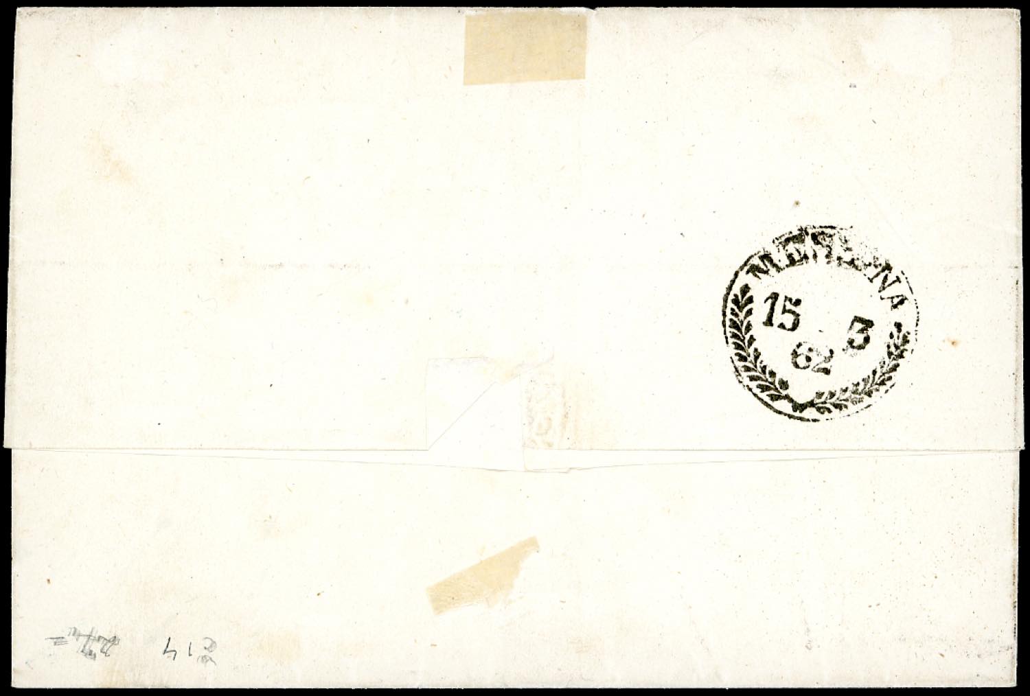 1862 - 5 grana rosso carminio (21), bel pli d'accordeon orizzontale, perfetto e ben marginato, su fresca sopracoperta di lettera da Napoli 14/3/1862 a Messina. Rara varietà su questa emissione, di splendida qualità. Chiavarello, cert. Bottacchi. Ex coll. Imperato.